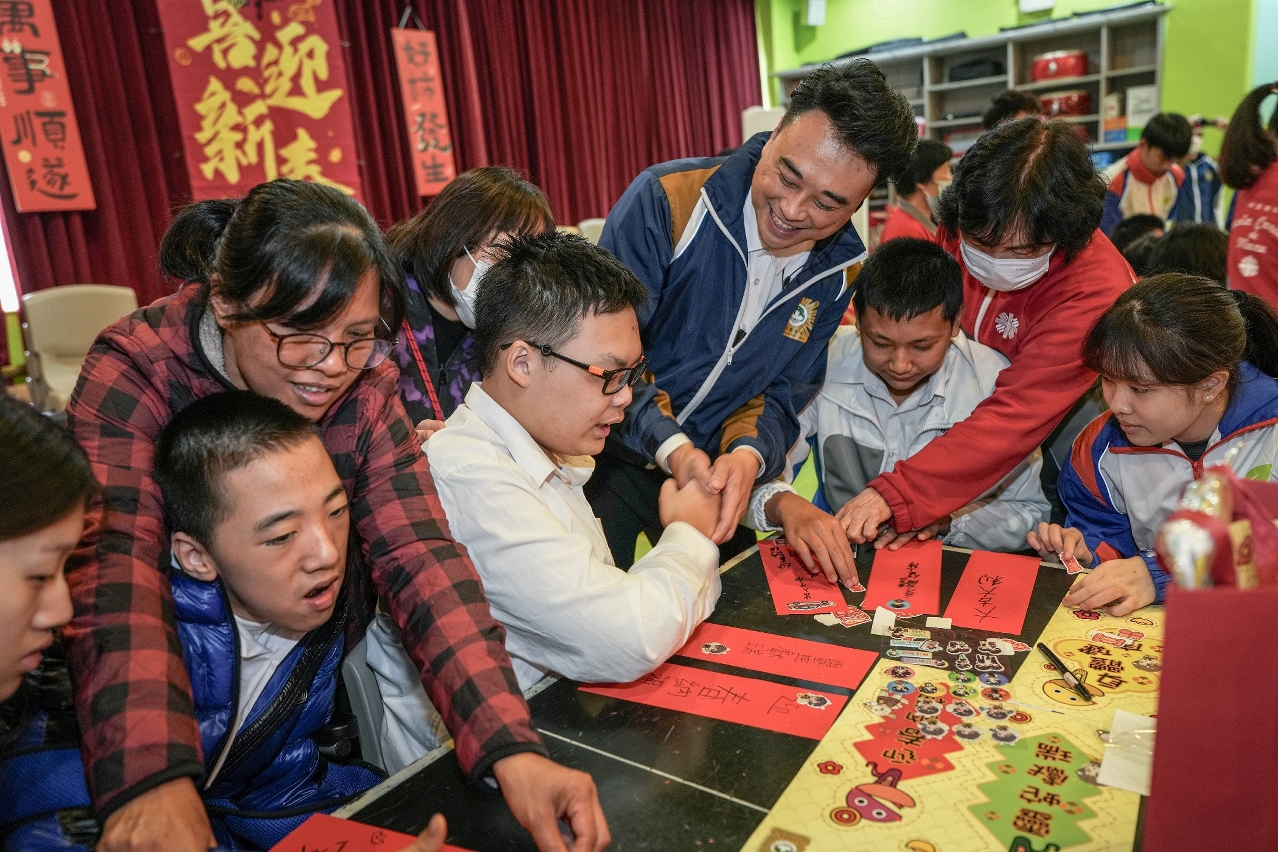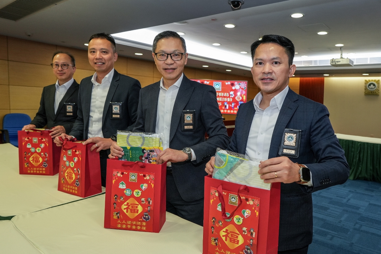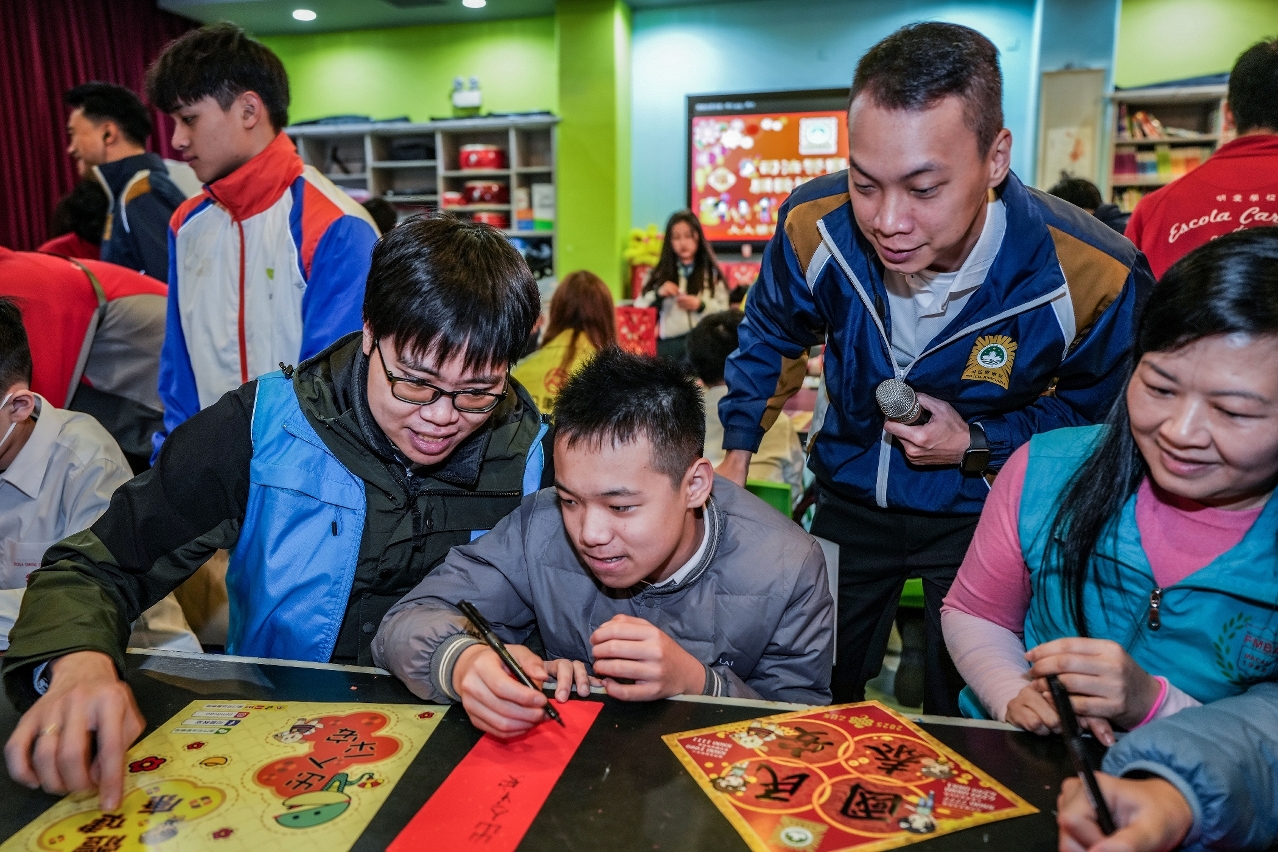 1月24日上午,一行人组成探访队前往氹仔明爱学校探望一众师生,向学童们送上福包礼品,并致以节日问候和祝福。期间探访队成员与师生亲切交谈,增进对康复教育的认识,促进相互理解;本局人员向师生传授简单防罪知识,教导他们识别诈骗陷阱的技巧,提高自我保护意识,免受犯罪侵害。其后探访队成员与学童们合力制作特色挥春及贺年劳作,共同欢唱贺年歌曲,现场洋溢一片温馨喜庆的节日气氛。