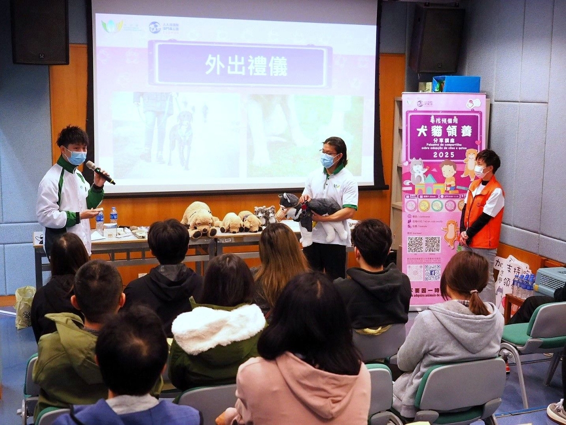 为宣扬做个尽责宠物主人、爱护动物、领养代替购买的理念,市政署持续与动保团体携手走进校园,向不同年级学生进行生命教育工作。倘学校有意参与上述讲座或其他与《动物保护法》或《动物防疫法》主题相关的讲座活动,欢迎电邮至civicedu@iam.gov.mo或传真至8591 2372报名。