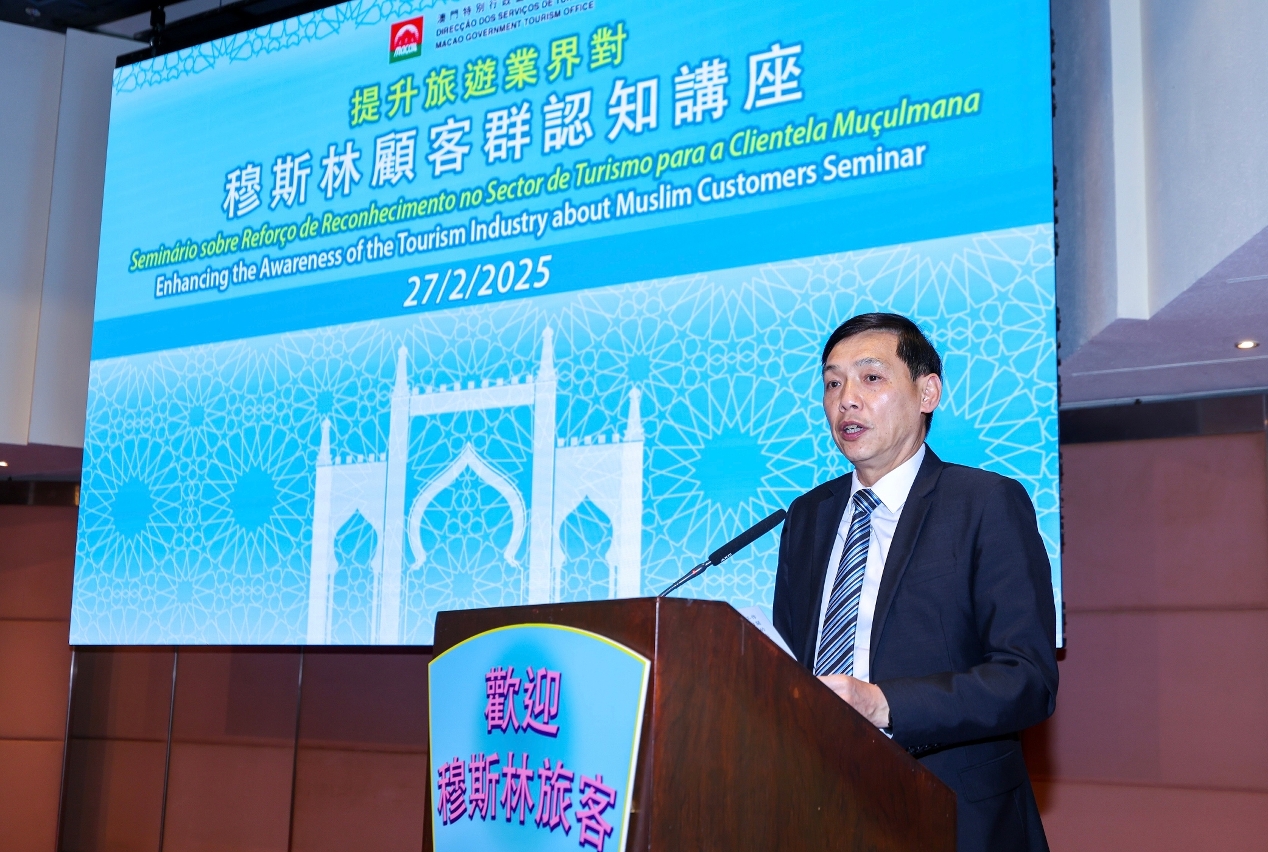 旅游局今(27日)举办“提升旅游业界对穆斯林顾客群认知讲座”,协助旅游业界加强接待穆斯林客群的知识和技巧,并推广清真认证,助力打造穆斯林友好的旅游环境,促进客源多元发展,力拓国际市场,配合经济适度多元发展规划,深化澳门“世界旅游休闲中心”建设。