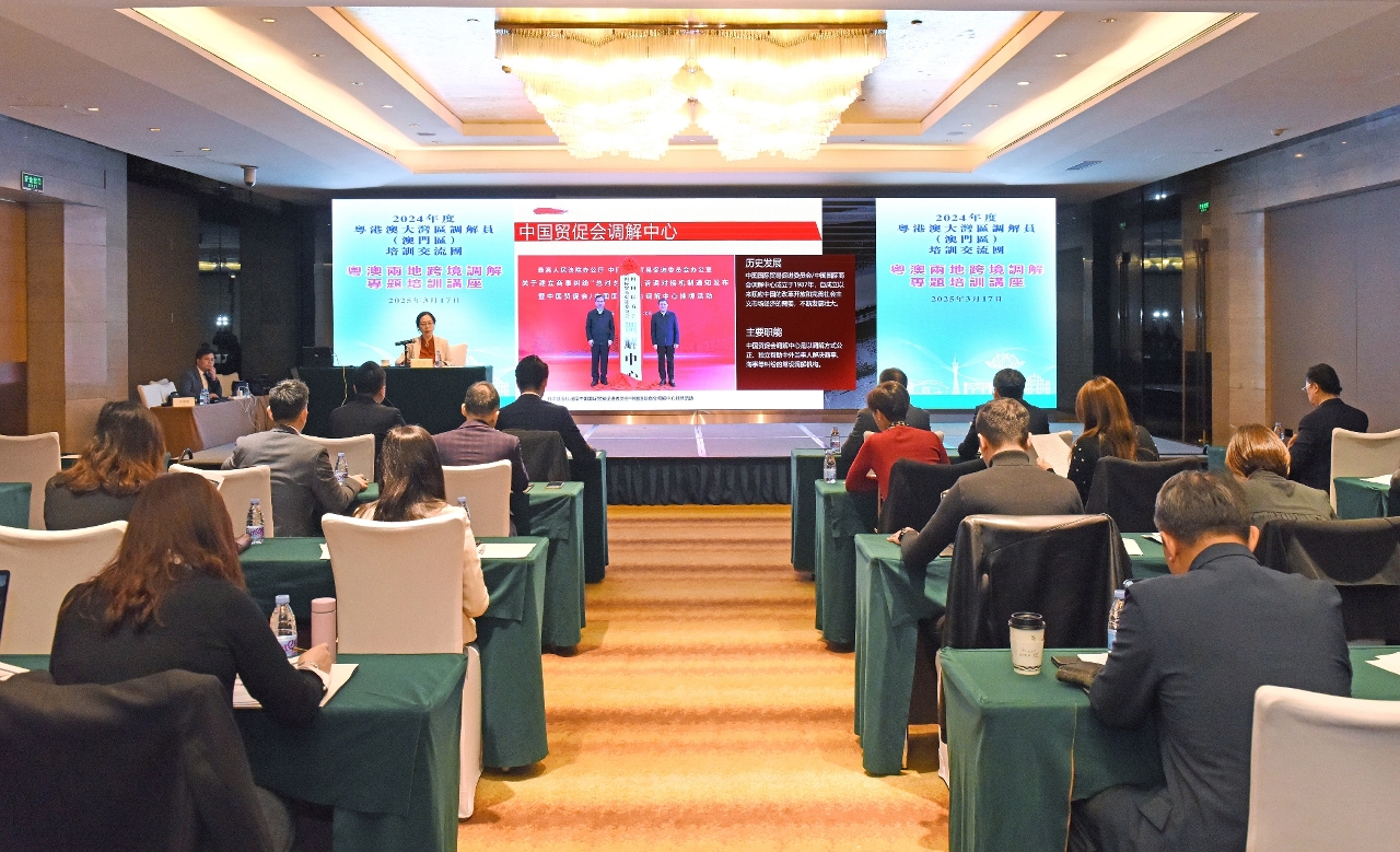 座谈会上,澳门区调解员与广东省调解员就两地调解制度、调解员的实务工作,以及如何加强大湾区调解员的培训合作等议题进行深入交流。同时,亦邀请了广东省贸促会涉外商事法律部部长王宁,以及深圳市蓝海法律查明和商事调解中心创始人、战略与发展委员会主任肖璟翊分别就跨境调解的法律框架与实践案例等内容为澳门区调解员作专题培训。