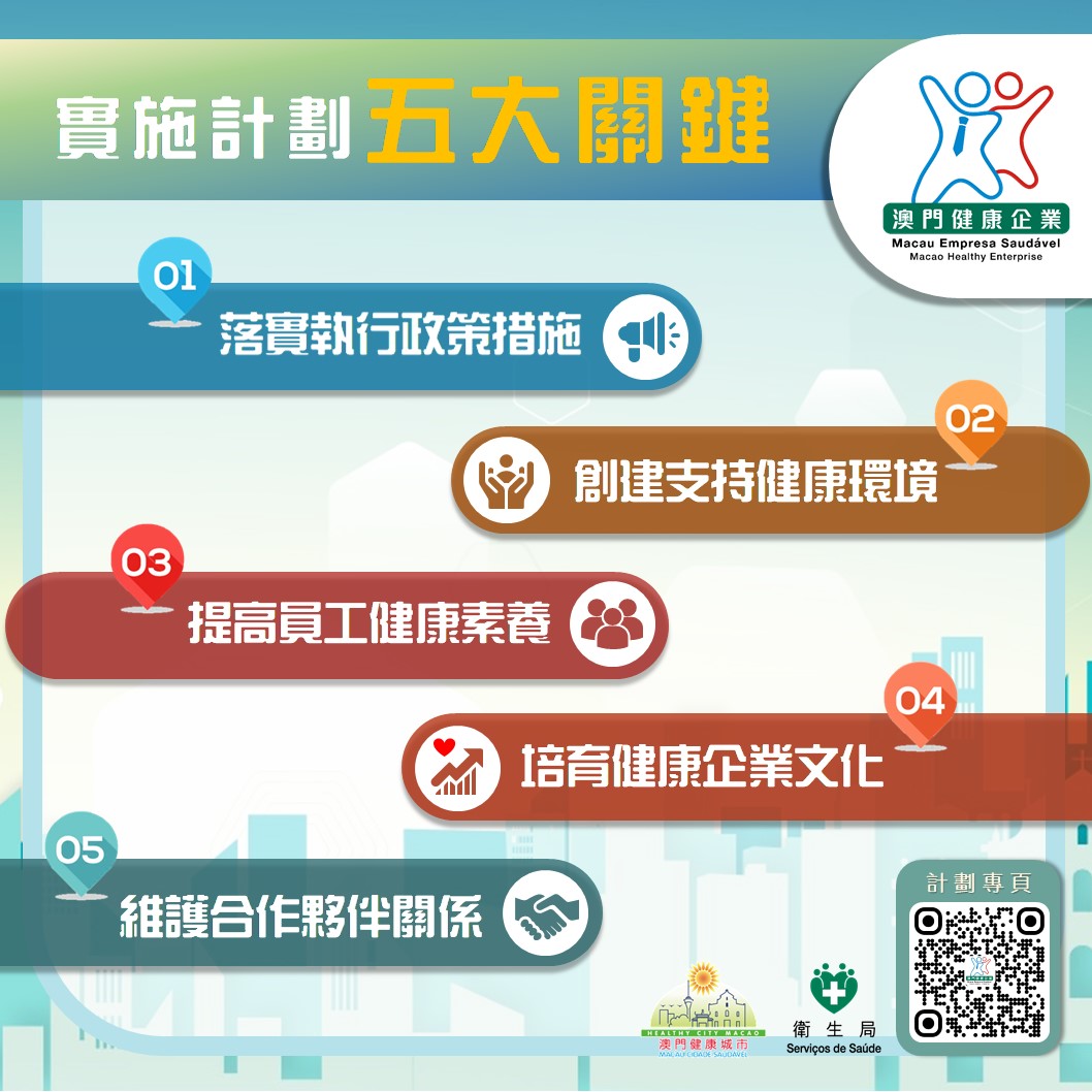 “健康企业”计划设系统化的评估机制,透过落实执行健康政策和措施、实践支持健康环境、开展健康促进活动、调查员工满意度、维护合作伙伴关系等多个层面进行评估。达标企业会荣膺年度“健康企业”称号,以表彰其在推动员工身心健康上所作出的努力,进一步激励和吸引更多企业参与。而今年参与计划的企业已增至26家,反映社会各界对推动健康职场、建设“幸福澳门”的广泛认同与支持。该计划为年度性计划,每年第四季开放新一年度的报名。有兴趣参与的企业,可浏览“健康企业”计划专页(https://www.ssm.gov.mo/healthyenterprise)或扫描附图的二维码,以获取最新资讯。如欲了解更多,欢迎透过电邮healthyenterprise@ssm.gov.mo或致电85041463、85041401查询。
