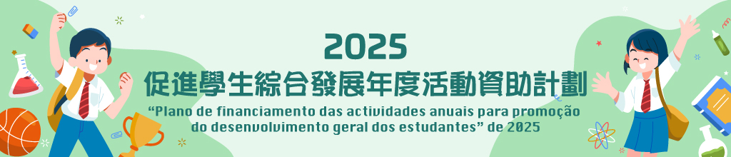 2025年 “促进学生综合发展年度活动资助计划” 将于2025年4月1日至4月30日接受第二轮申请,资助对象为在澳门依法成立的非牟利社团和澳门私立高等院校,以及持澳门居民身份证、并在澳门高等院校修读高等教育课程的学生。