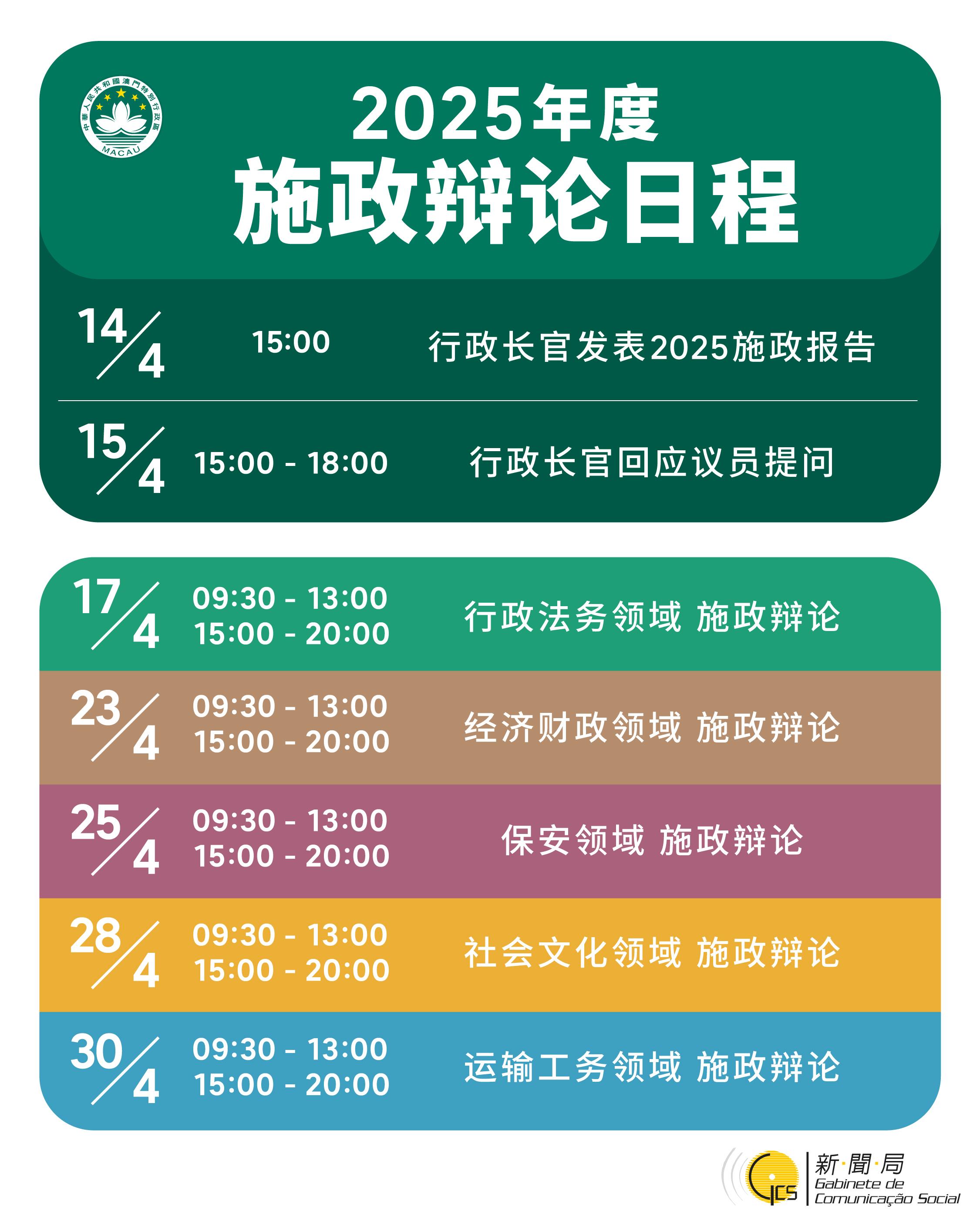 此外,新闻局届时也在新设的Facebook葡文专页(www.facebook.com/macaogcspt)及英文专页(www.facebook.com/macaogcsen),发布2025年度施政报告的资讯。