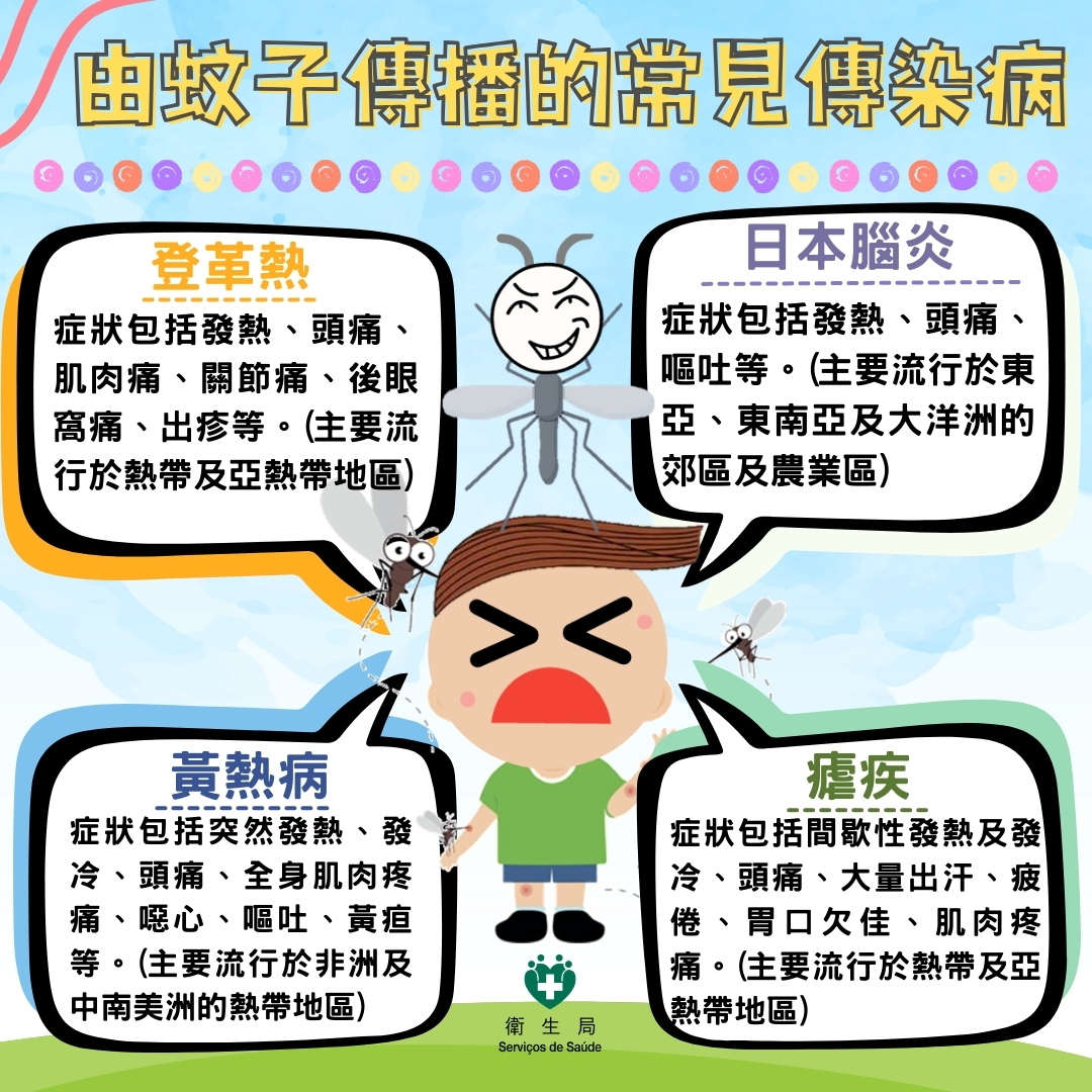 此外,为加强居民的防范意识,卫生局、治安警察局、海事及水务局和民航局进行跨部门合作加强宣传,包括在各陆路边境口岸大楼、码头及澳门国际机场播放外游注意防范的相关卫教宣传讯息等。欲了解更多预防疾病相关资讯,可浏览卫生局传染病资讯专页https://www.ssm.gov.mo/csr。