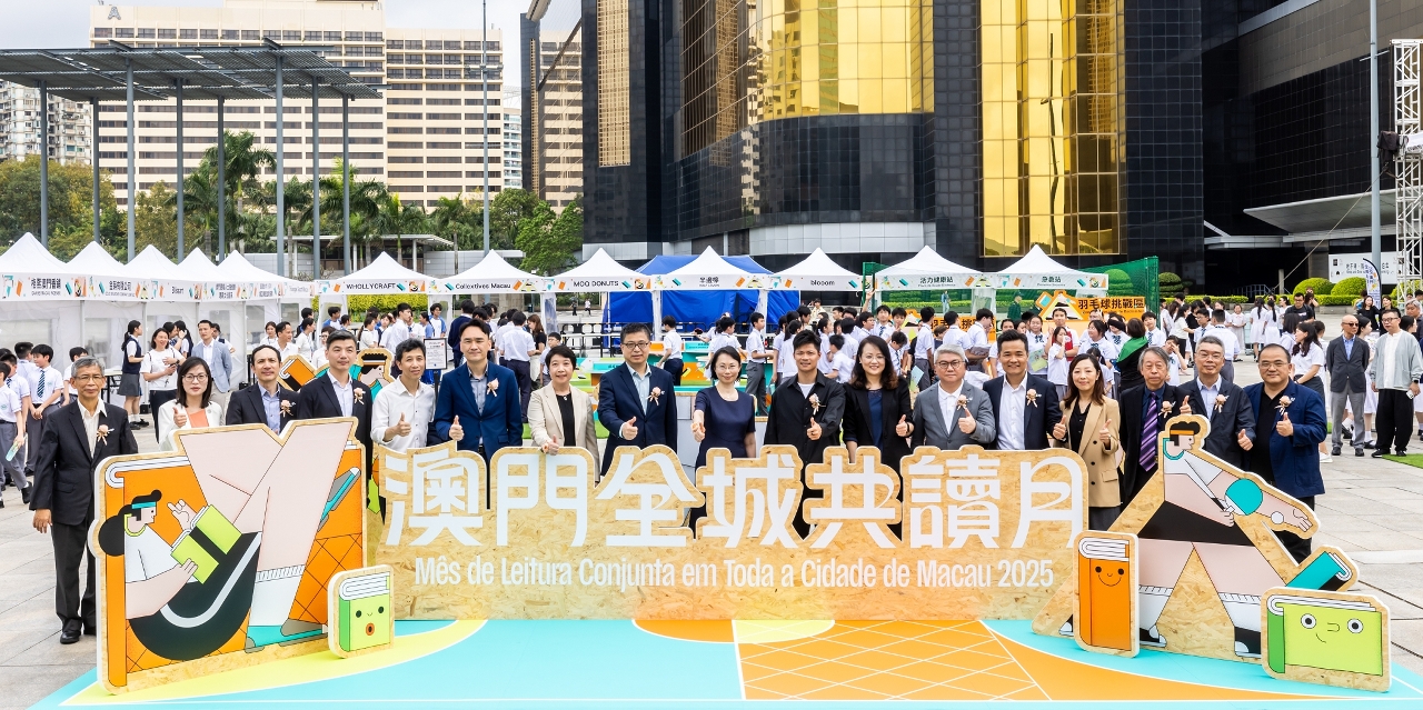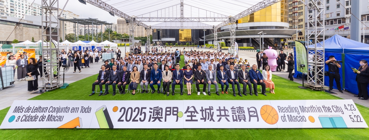 由文化局、第十五届全国运动会及全国第十二届残疾人运动会暨第九届特殊奥林匹克运动会澳门赛区筹备办公室、教育及青年发展局与社会工作局联合主办,体育局、卫生局协办,澳门图书馆暨资讯管理协会、澳门高校图书馆联盟、澳门街坊会联合总会、澳门工会联合总会、澳门妇女联合总会、澳门明爱、澳门乐团有限公司支持的“2025澳门全城共读月”(以下简称“共读月”)于今日(4月23日)在澳门文化中心广场举行系列活动启动仪式,澳门特别行政区政府社会文化司司长柯岚出席主礼,现场逾250名嘉宾及学生等参与,并开展共读活动,宣扬“阅读丰富生活”理念,协力共建“阅读之城”。