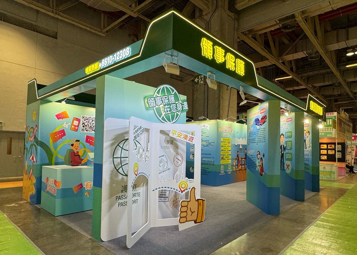 此外,身份证明局与外交公署合办的展位设于会场B 区,编号 B8,展位包含不同元素,包括有领事保护资讯展览、大型互动打卡装置,以及有奖问答游戏,奖品丰富,欢迎市民参与。