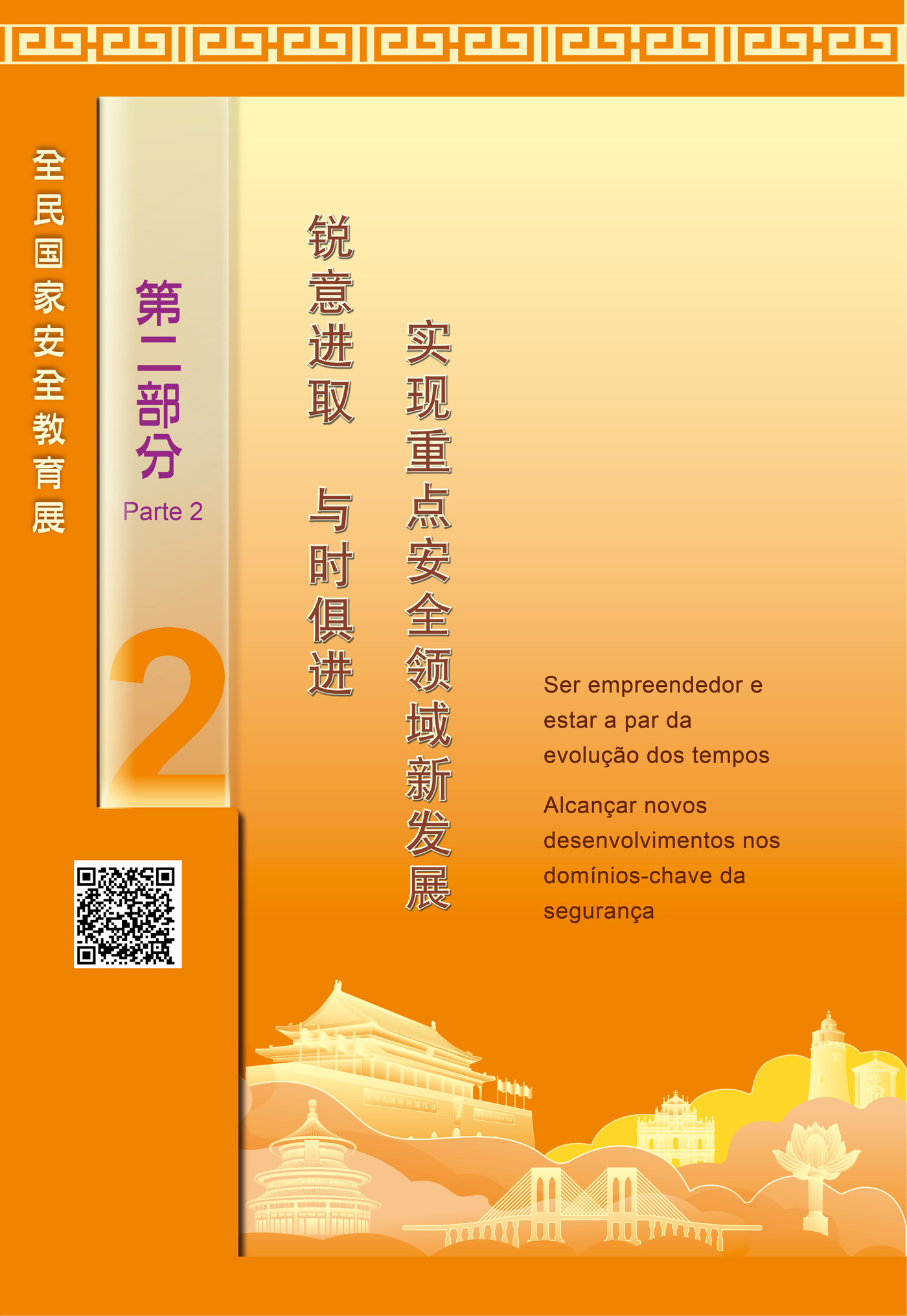 本次展览共分为序章和六个专题部分,其中,第二部分以“锐意进取,与时俱进,实现重点安全领域新发展”为主题,介绍总体国家安全观及其涵盖的众多领域。2014年4月15日,国家主席习近平创造性提出总体国家安全观:坚持总体国家安全观,必须坚持以人民安全为宗旨,坚持国家安全一切为了人民、一切依靠人民。
