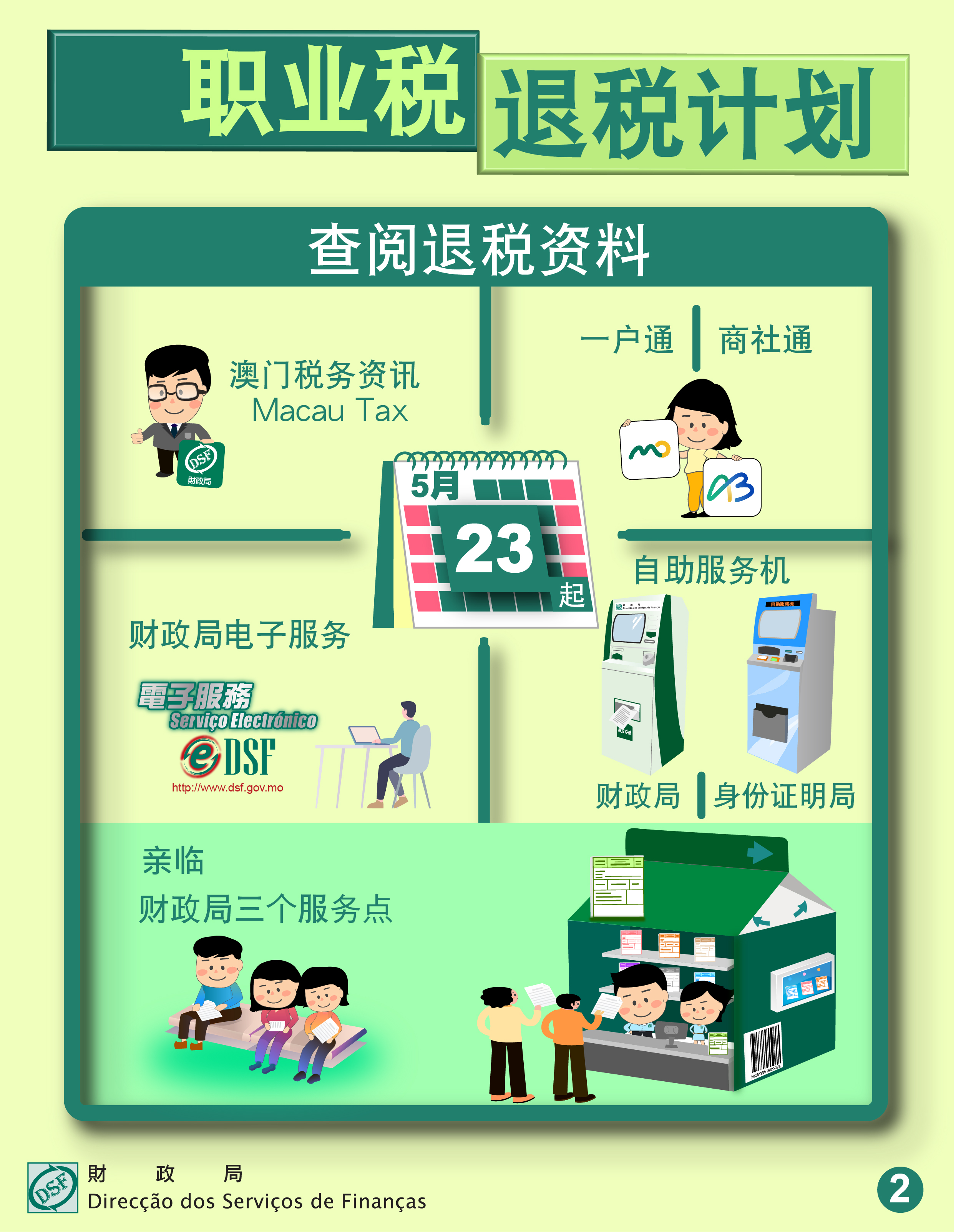 纳税人可自5月23日起透过以下渠道查阅2023年度职业税退税计划资料: