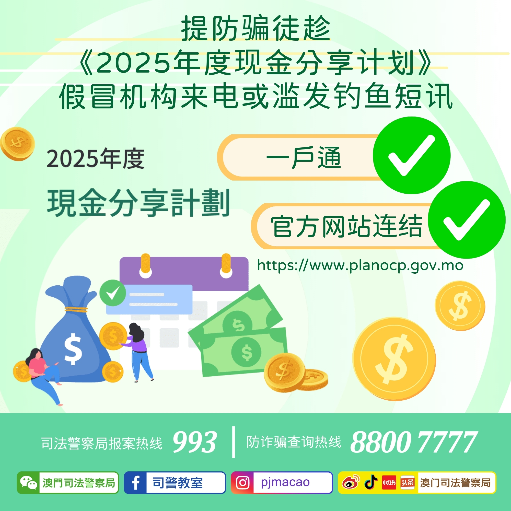 1.《2025年度现金分享计划》的相关机构绝对不会发送附有连结的短讯。在任何情况下,请勿点击连结或在互联网上贸然输入个人资料、银行帐户资讯或信用卡资料。