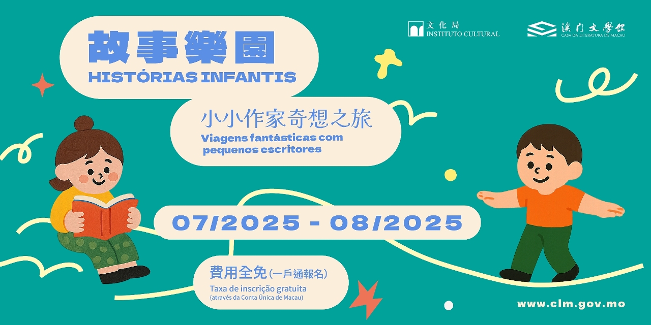 “故事乐园──小小作家奇想之旅”将于7月5日至8月9日期间逢星期六下午3时至5时在澳门文学馆举行,对象为4至7岁的儿童,需由一位家长陪同参与。每场活动以不同的儿童文学故事作为主轴,导师透过生动有趣的方式演绎作品内容,配合趣味小游戏及互动环节,让参加者畅游精彩的故事世界;活动亦设有主题相关写作练习,在轻松愉快的氛围中启发孩子的想像力与表达能力,把天马行空的想法化为文字,与家长一同享受创作乐趣。