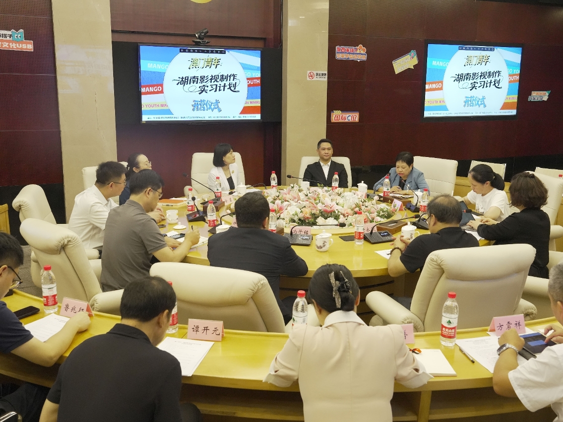 湖南广播影视集团徐蓉副总经理对澳门青年表示热烈欢迎,她向澳门青年详细介绍了集团旗下各机构与澳门交流合作的情况,期待通过历时一个月的实习实践,为澳门青年提供一个瞭解内地电视行业的窗口和平台。最后,澳门实习青年代表表达对这次宝贵机会的感激与期待,期待透过实习,在专业领域深耕成长,读懂湖湘文化的创新基因,并承诺以专业态度投入实习,让实习成果成为未来职业生涯的坚实基石。