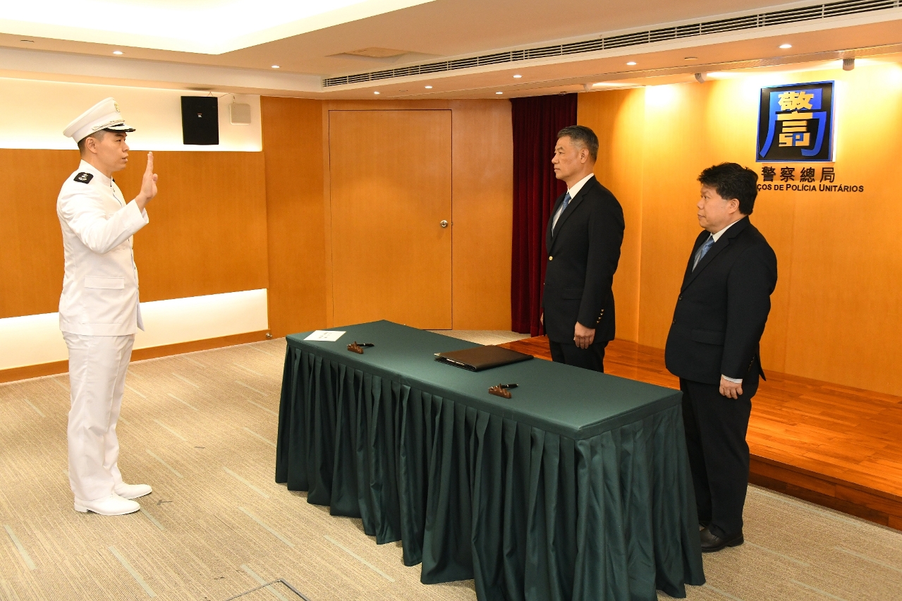 根据保安司司长批示,自2025年8月1日起,委任治安警察局副警务总长吴俊铭为警察总局警务联络及公共关系处处长。就职仪式于今(1日)在警察总局举行,仪式由警察总局局长梁文昌主持,并在局长助理梁文照、局长助理魏瑞斌、局长助理林俊生、金融情报办公室主任朱婉仪、局长办公室协调员赵汝民以及各部门主管及同事的见证下,吴俊铭处长宣誓就任。