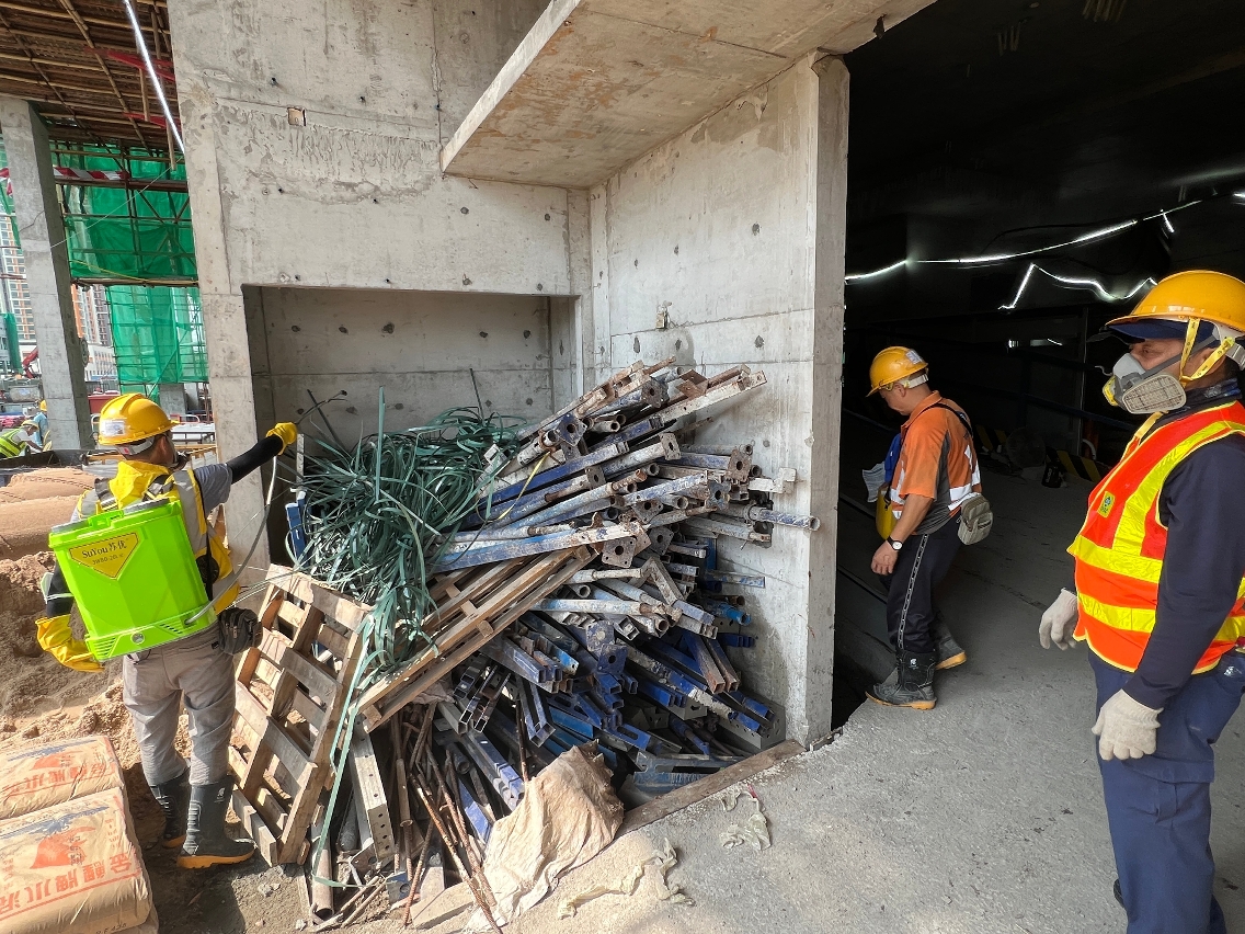 针对建筑工地积水易引致蚊虫孳生的特性,由卫生局、劳工事务局、土地工务局及公共建设局组成的地盘联合防控小组,透过跨部门高效协作机制,积极督导承建商加强工地灭蚊措施,系统性清理积水及蚊虫孳生源。因应新城A区个案,小组成员于本周联同A区各承建商,每天对区内地盘开展积水及孳生源巡查工作,重点视察涉事地盘及邻近地盘的防控工作执行情况,并现场提供灭蚊技术指导与反馈,确保各项防蚊灭蚊措施落实执行,全力降低基孔肯雅热及登革热等蚊媒疾病的传播风险,共同保障公共卫生及工地环境安全。