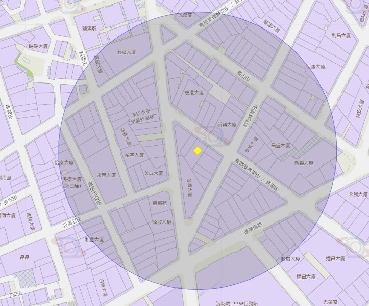 嘉野度将军街兴发大厦附近风险区域100米半径范围