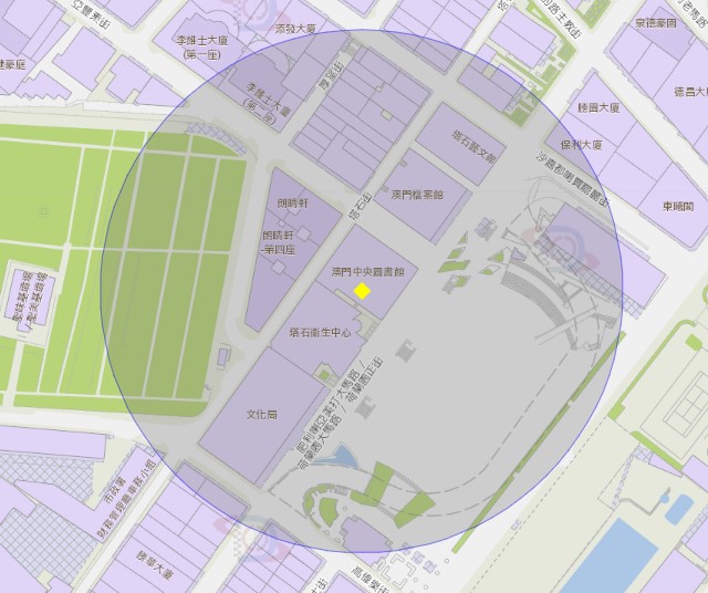 澳门中央图书馆附近风险区域100米半径范围