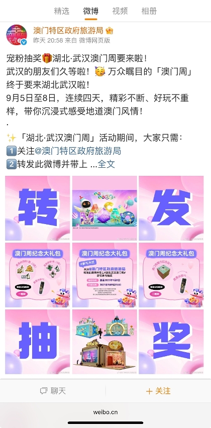 旅游局特意为“湖北•武汉澳门周”制作专页(https://www.macaotourism.gov.mo/zh-hant/article/promotion/hubei-wuhan-macao-week-2025);欢迎浏览专页及关注澳门特区政府旅游局官方微信、微博、小红书和抖音帐号,了解更多活动资讯。