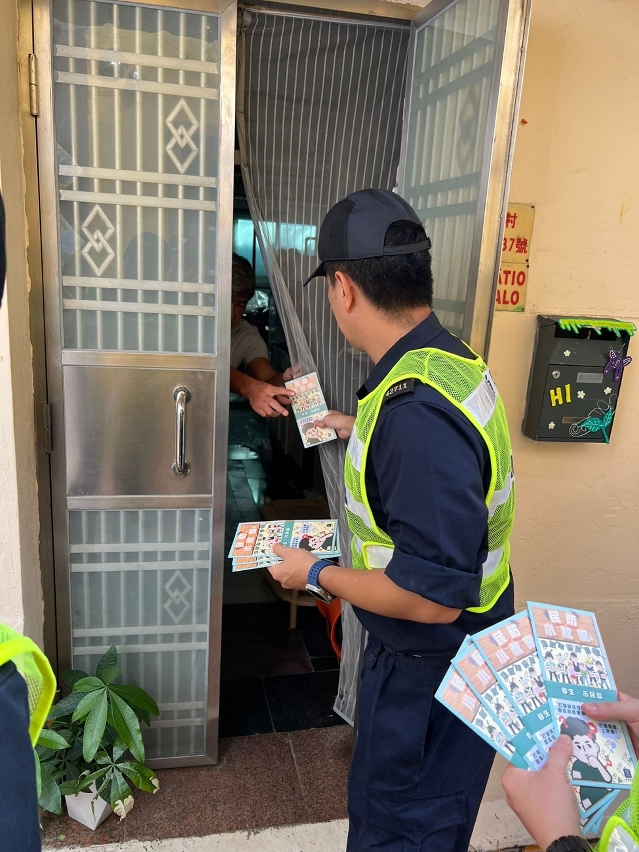 在警察总局统筹下,保安高校联同澳门海关、治安警察局、消防局等民防部门,派员前往路环市区尤其是低洼地区,向旅客、居民和商户派发民防宣传小册子,讲解防风防汛知识,提醒他们密切留意气象资讯、呼吁居民提前准备应急物资,并熟悉“台风期间风暴潮低洼地区疏散撤离计划”。亦派员前往横琴口岸,向旅客宣传防风知识及实用资讯,确保旅客掌握最新的民防动态,保障出行安全。