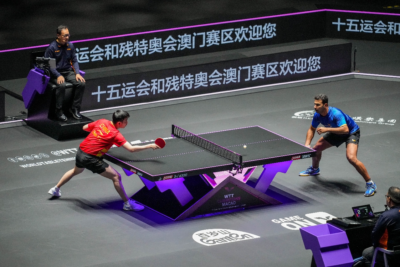 由体育局、世界乒乓球职业大联盟(WTT)及银河娱乐集团主办、澳门乒乓总会协办的「WTT 澳门冠军赛 2025 由银河娱乐集团呈献」,今(11)日续在澳门东亚运动会体育馆举行,中国王楚钦及中国澳门朱雨玲等球员顺利闯入8强。