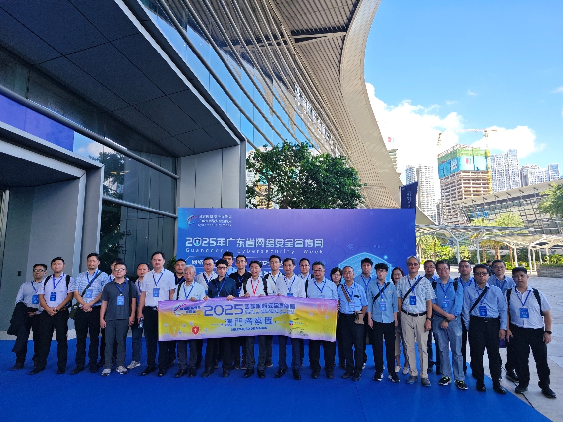 由邮电局主办、科学技术发展基金及澳门生产力暨科技转移中心协办的“2025年国家网络安全宣传周”澳门考察团于本年9月15日顺利举行,此次活动邀请了视听广播、电信网络、科学及技术领域的行政公益法人,以及全公共资本公司等关键基础设施私人营运者之网络安全人员共30人前往珠海市参加“2025年国家网络安全宣传周”活动。