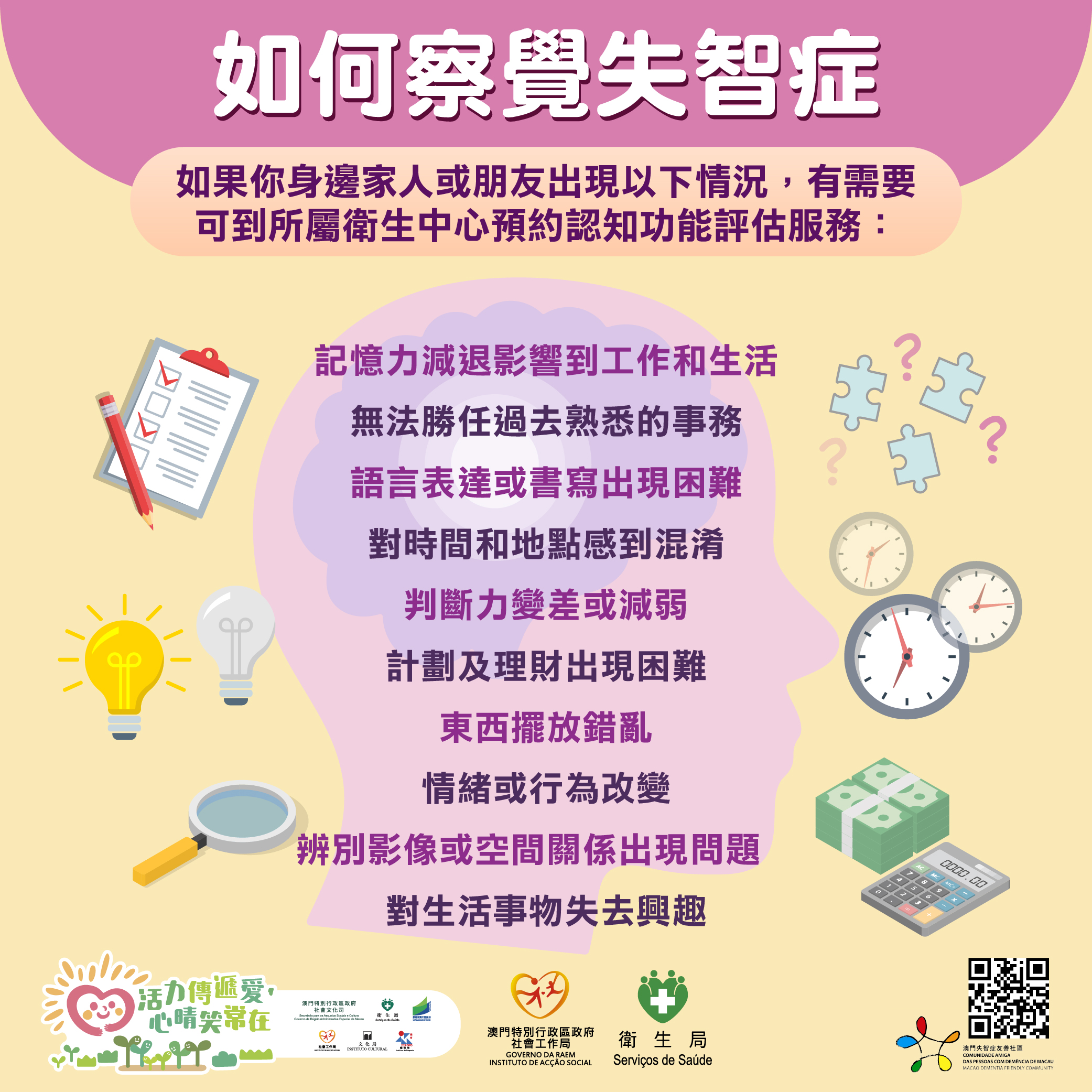 特区政府十分重视居民健康,在失智症防治上已建立系统性支持网络,一方面成立失智症诊疗中心与支援中心,结合社会服务资源,为患者提供从医疗到社会照护的无缝衔接服务。目前卫生局每年为超过2,000人进行认知功能评估,其中约600人经评估需转介至失智症诊疗中心记忆门诊治疗,新症患者平均轮候时间约4周。另一方面,透过邀请本澳200多个团体加入“失智症友善大联盟”,共同构建失智症友善社区环境,助力患者维持社会参与、提升生活质量,逐步实现“早期预防、早期发现、早期诊断、早期治疗、早期支援”的防治目标。