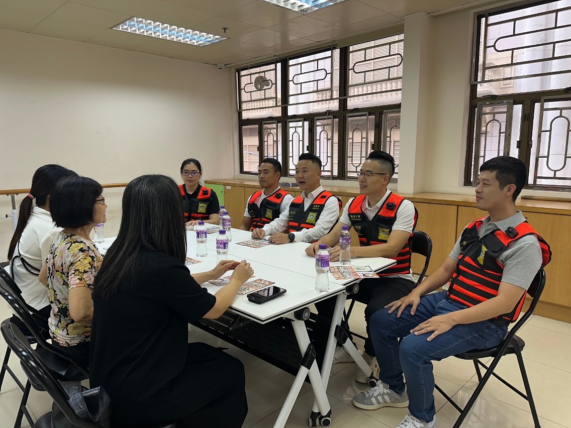 司警局于今(23)日派出撤离小队以及社区警务及公共关系处人员前往C区接触区内坊会、商户、茶寮及居民,开展面向居民尤其是长者的防灾及撤离计划宣导工作。司警局人员再三提醒居民务须高度重视是次台风所带来的严重影响,并向他们详细讲解台风及风暴潮的防灾准备、应急包、撤离计划和紧急求助等资讯,呼吁他们务必密切留意由政府发出的台风及风暴潮资讯,尽快完成应对是次超强台风的措施,并做好随时撤离的准备。