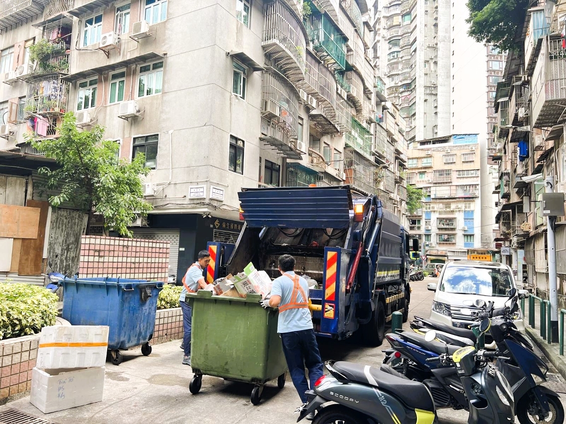 市政署已协调清洁专营公司在八号风球悬挂前加派人员及车辆,加快清运市面垃圾,并加紧检查和加固垃圾收集设施,避免台风吹袭期间垃圾散乱在公共街道上,加重对环境卫生影响,同时亦协调清洁专营公司预先停泊工作车辆于澳门区,并于低洼地区提前放置大型环保斗,使能于风后快速及时进行垃圾清运工作。另外,市政署与低洼地区的坊会及团体已建立构通协调机制,并预先提供了适当的防灾清洁物资,以应对台风善后工作。