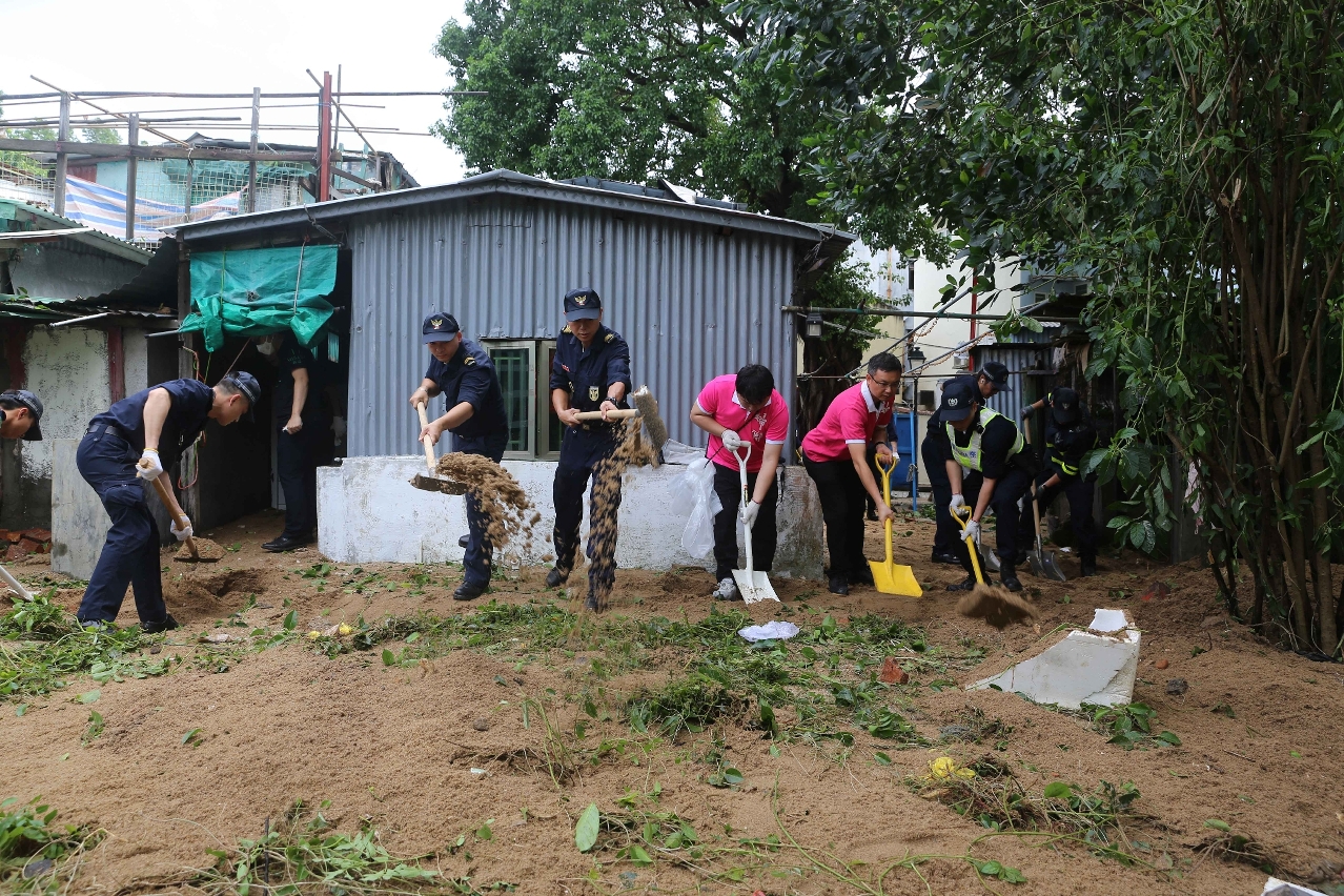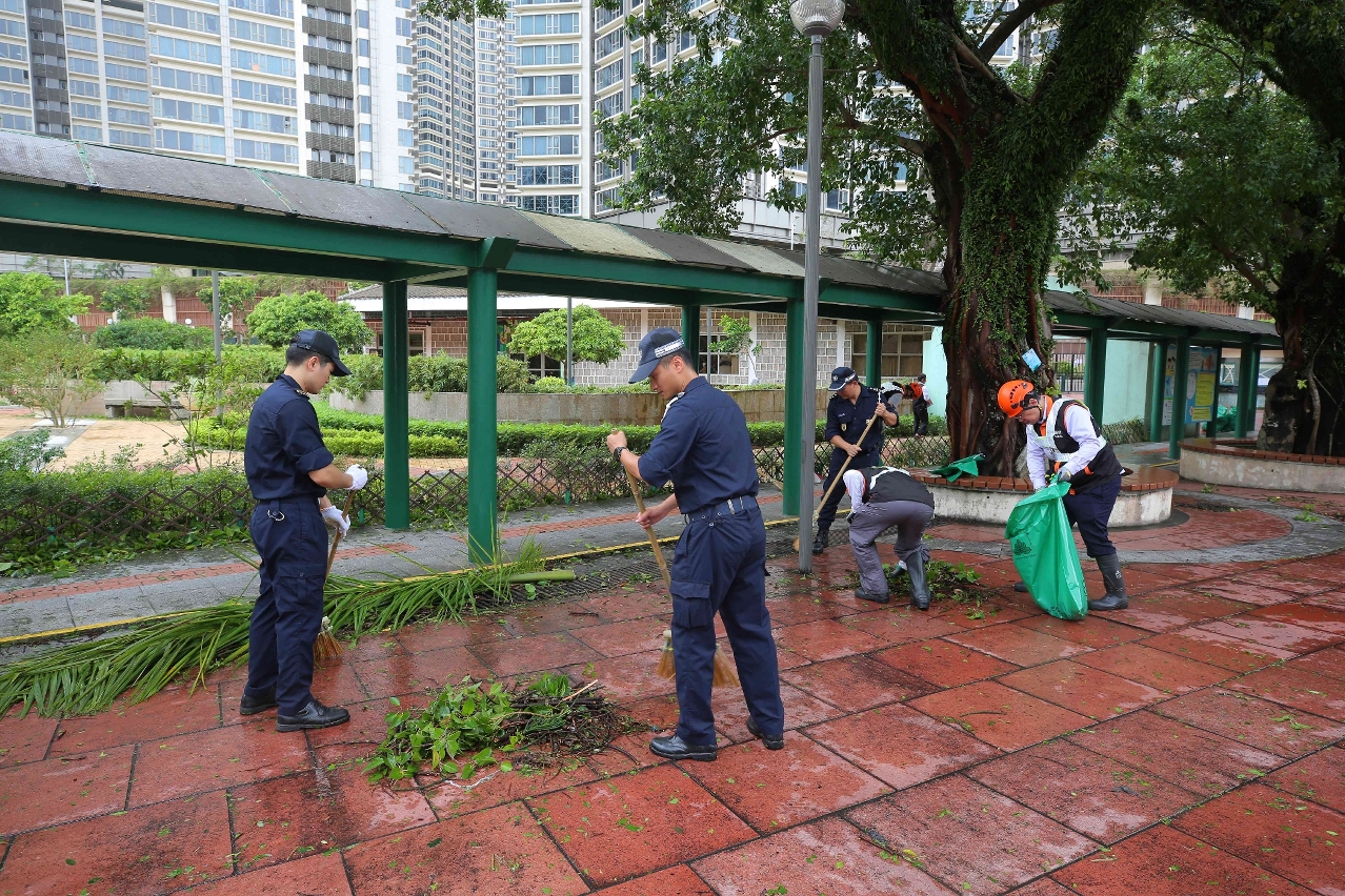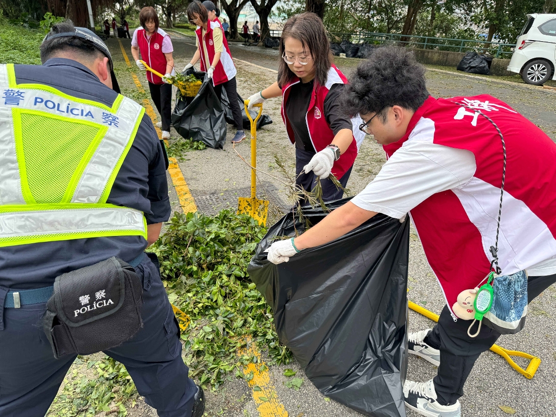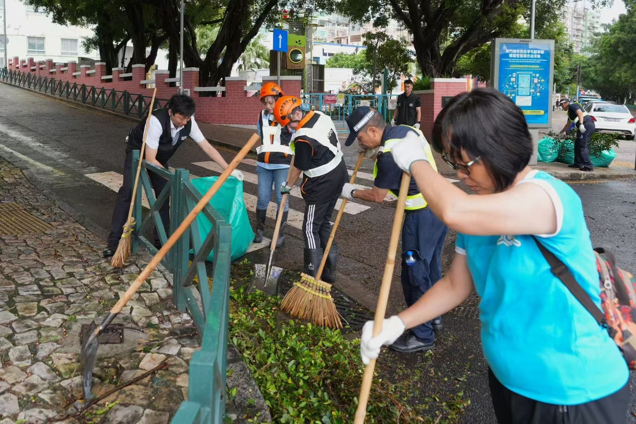 为推动市面全面恢复如常,在民防行动中心的统筹协调下,于今日上午组成联合小队,共同前往本澳各区进行清障行动。参与行动的成员包括﹕200多名保安部队及保安部门人员、200多名社区民防联络机制成员和20多名民防志愿者。并联同来自各司范畴属下部门和立法会、法院、检察院、 廉政公署及审计署等逾 1100 名公务人员组成的风后支援队展开行动。