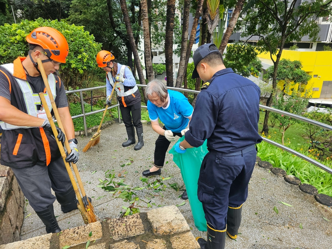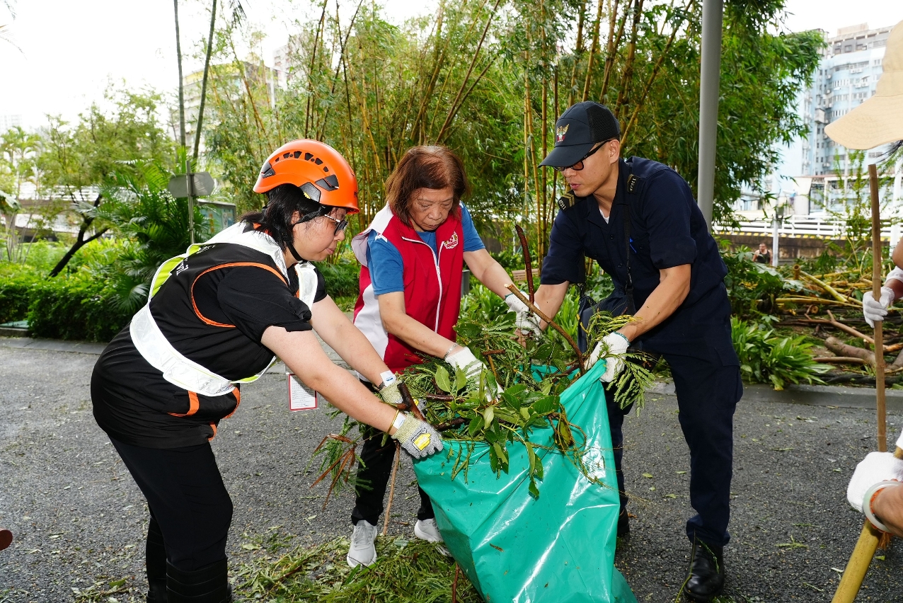在是次超强台风应对工作中,各政府部门凝心聚力,协同作战﹔社区民防联络机制成员全程与民防行动中心保持紧密联络,提供及时支援,实现高效协作﹔民防志愿者以实际行动诠释了服务社会的责任与担当,充分彰显出由政府主导、社会多元参与、市民积极配合的现代民防治理体系成效,成功构筑起坚实的民防安全屏障。