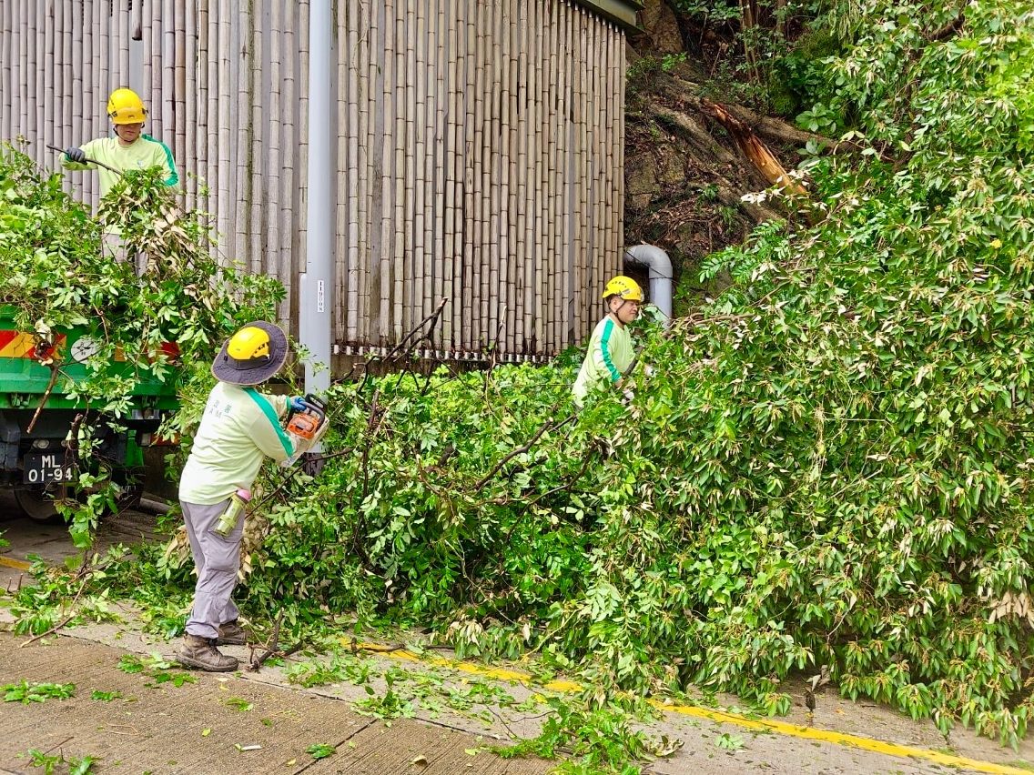 台风过后,市政署于今日凌晨起加紧清理各区塌树及断枝,扶正被强风吹歪的树木,已优先处理阻碍交通干道或紧急的个案,以尽快开通道路,保障市民安全。有关清理善后工作仍在加紧进行,市政署呼吁市民,切勿擅闯围封区域或走近有倒塌风险的危树。由于未来几日天气仍不稳,应避免在风雨期间或其后数日内进入山坡林区及在树下逗留,以免发生意外。