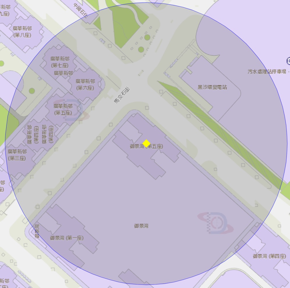 澳门东北大马路386号广华新邨第10座附近风险区域100米半径范围