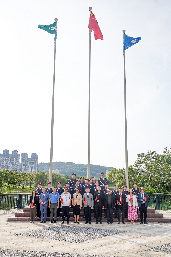 为庆祝中华人民共和国成立76周年,澳门大学国旗仪仗队今(1)日举行了隆重的升国旗仪式,展现澳大师生的爱国情操。