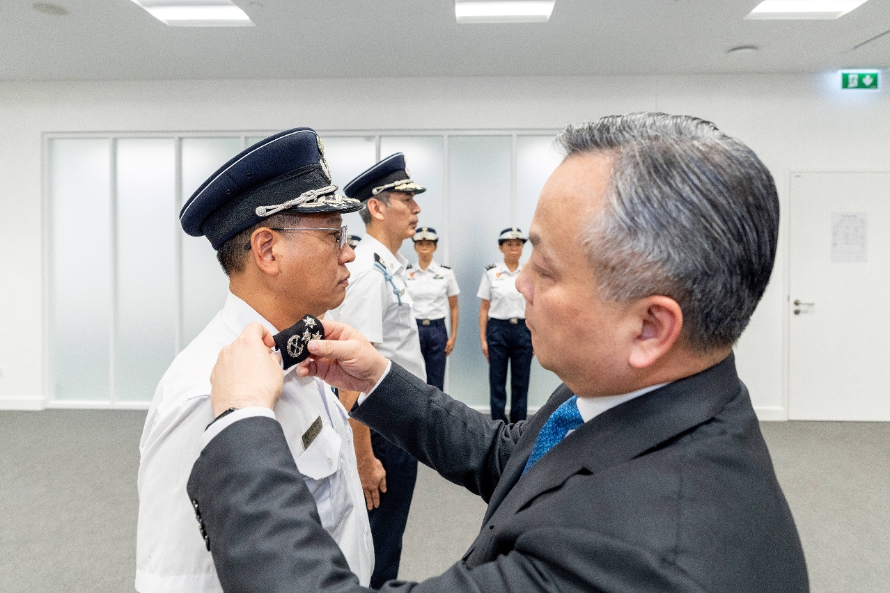 • 海关关长何浩瀚为关务总长黄永明佩戴肩章
