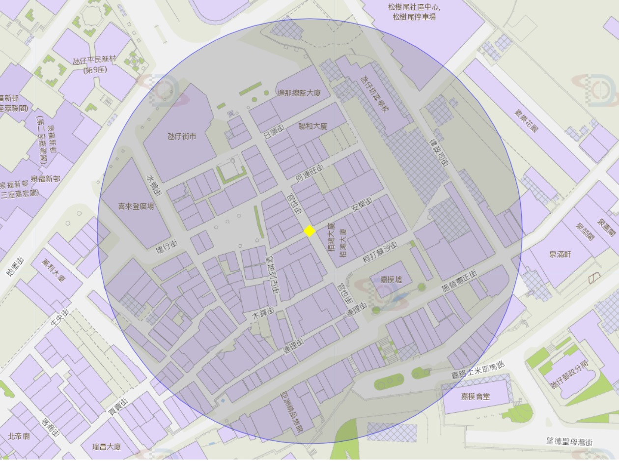葡京人附近风险区域100米半径范围