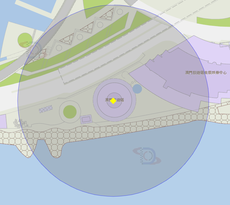 澳门旅游塔会展娱乐中心附近一带风险区域100米半径范围