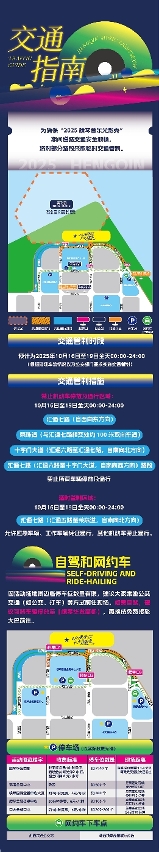为保障活动道路安全畅通,活动现场周边路段将实施交通管制。10月16日至10月19日全天00:00-24:00,汇通七路(自西向东方向)、荣珠道(与汇通七路相交处约100米双向车道)、十字门大道(汇通六路至汇通七路,自南向北方向)、汇通七路(汇通六路至十字门大道,自南向西方向)路段,禁止所有车辆停放及通行。汇通七路(汇通五路至荣珠道,自南向北方向)将于10月16日至10月19日全天00:00-24:00,实行适时管制,仅允许应急车辆、工作车辆凭证通行,其他机动车禁止通行。
