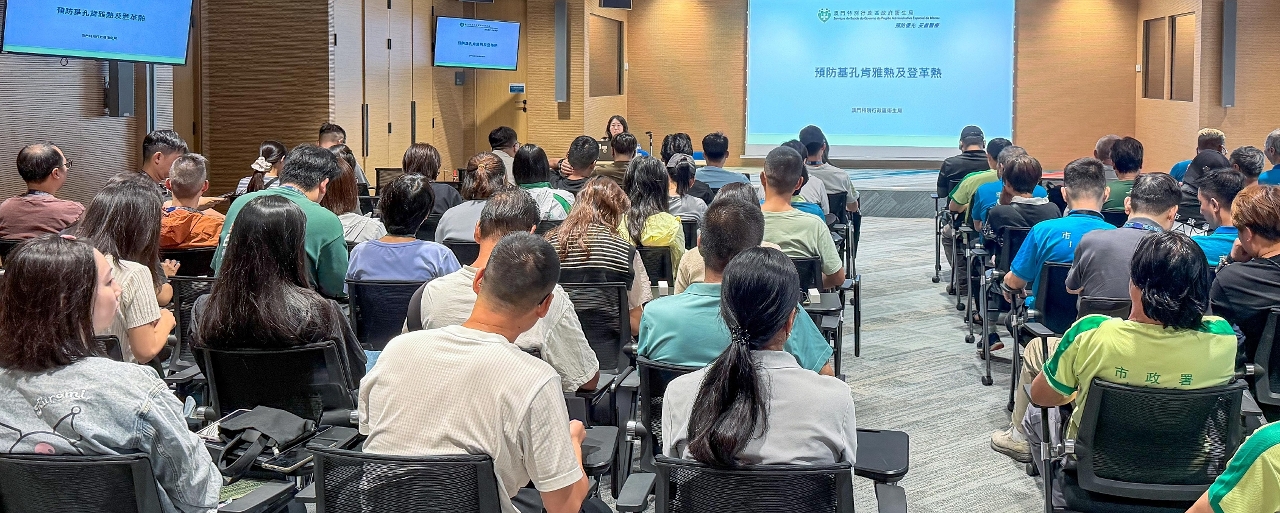 因应本澳基孔肯雅热及登革热(下称“双热”)风险持续,为提升园林绿化人员的防蚊意识,卫生局与巿政署今(17)日合办2场预防“双热"讲座,详细介绍双热的疾病特点、传播途径和户外防蚊等资讯,逾170名园林绿化人员出席。