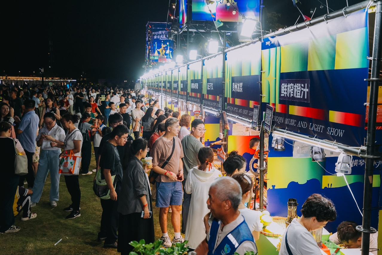活动现场设置了四十余个美食及文创摊位,粤澳特色小吃、冰爽饮品逐一登场。活动还特邀正安吉他、珠遵新茶饮参与,使市民与游客于光影交融的氛围里充分领略舌尖上的愉悦,体悟湾区青年的创意活力及感受山海相连的独特韵味。