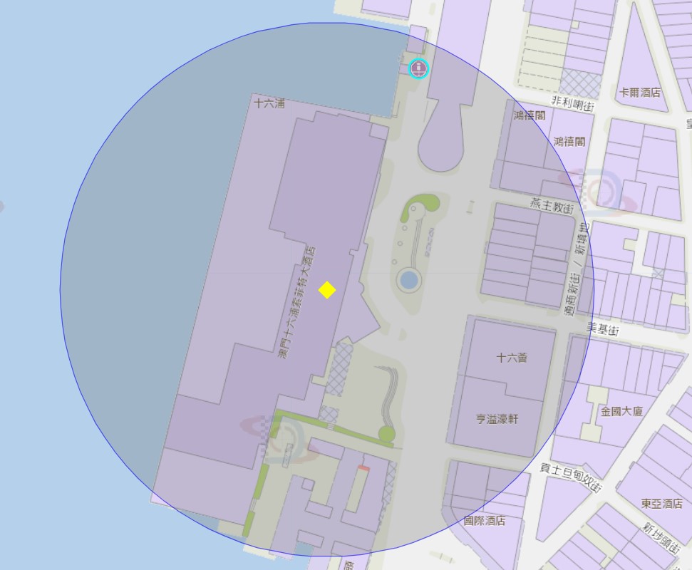 澳门十六浦附近风险区域100米半径范围