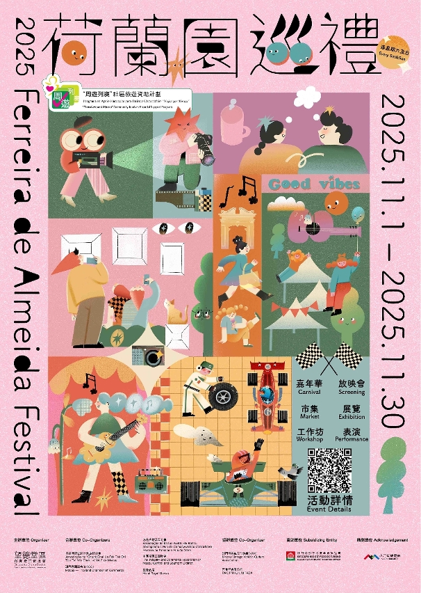 “2025荷兰园巡礼”的活动横跨整个11月,在望德堂区举行,为期一个月的活动集展览、市集、工作坊、表演、嘉年华及放映会于一身,6项活动包括:疯堂嘉年华、赛车与您游澳门工作坊、情浓雀仔园系列、微电影放映会、经典车展:Corolla特展及澳门格兰披治摄影展,邀请大家一同走进荷兰园,感受城市的温度与记忆。