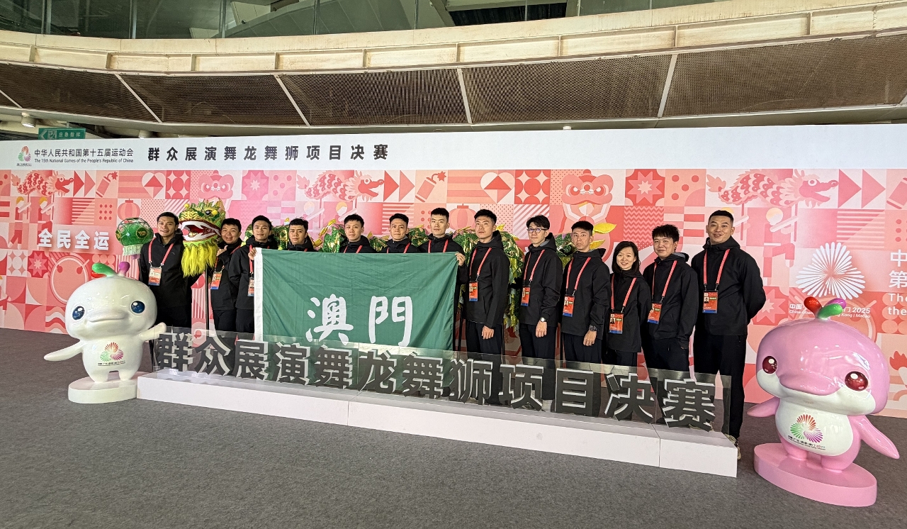 第十五届全国运动会群众展演舞龙舞狮项目决赛于11月11日至13日在佛山岭南明珠体育馆举行,澳门理工大学护理学学士课程学生黄泽荣,以及体育教育学士课程学生余乐琪代表澳门出战赛事,凭着与队员极佳的默契配合和出色的表现,分别于南狮障碍及舞龙障碍项目勇夺二等奖和三等奖,为澳门增光添彩。