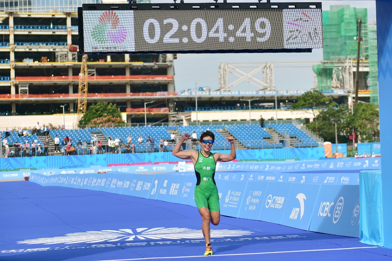 铁人三项在香港维多利亚港进行个人赛,澳门队派出3男3女参赛,当中只有女子队的许朗(HOI LONG)成功完赛,造出2小时04分48秒总成绩排名第8位,而队友程韵瑜(CHENG WAN U)及吴婉欣(NG UN IAN)均相继未能完赛;男子队的黄展华(WONG CHIN WA)、刘卓晞(LAO CHEOK HEI)及陈隽晔(CHAN CHON IP)三人同样未能完成赛事。