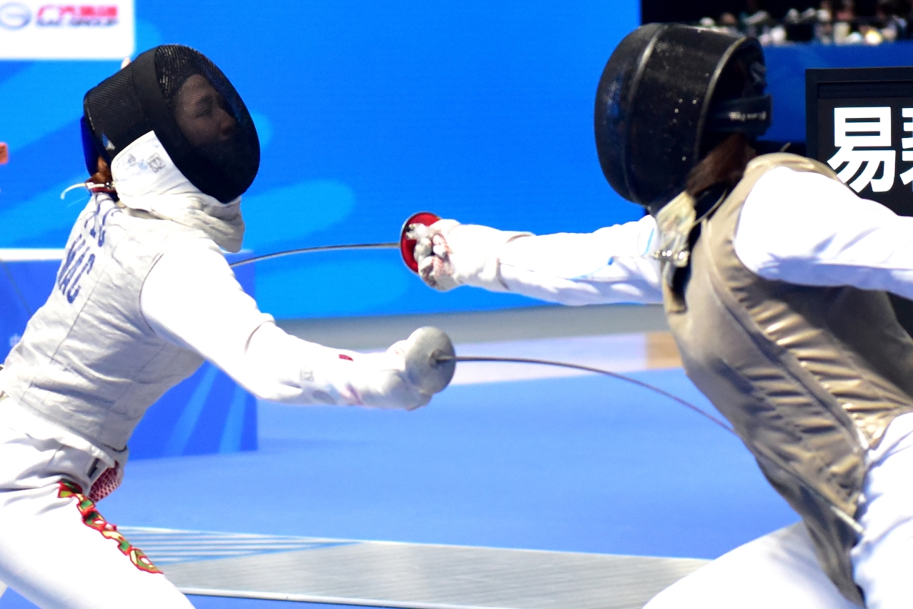 剑击最后一日比赛,澳门队出战女子花剑团体赛,先后派出林芷薇(LAM CHI MEI)、顾晓琳(KU HIO LAM)、易碧真(IEC PEK CHAN)及邓雅僖(TANG NGA HEI)上场,16强面对上海队以20比45告负,未能晋级,剑击队已完成本届所有赛事。