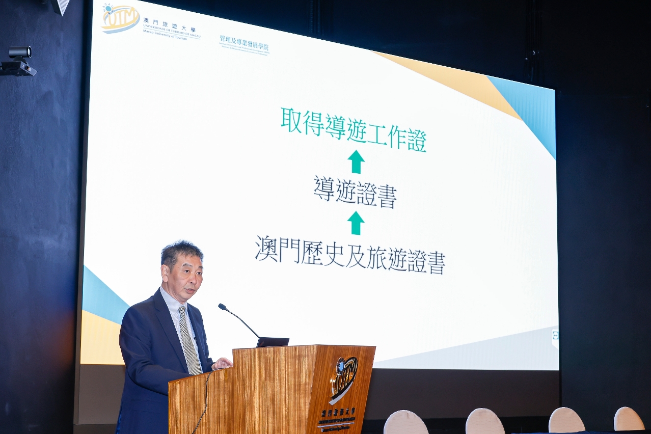 澳门旅游大学校长黄竹君致辞时表示,新法的推出,是澳门旅游业发展的重要里程碑,不仅为行业提供了更清晰的规范,也有助于保障旅游服务品质、提升旅客体验,并推动旅游业持续健康发展,迈向高质量的新阶段。大学配合新法实施推出相关导游职业课程,通过系统化培训,应对高速发展、日新月异的旅游市场。