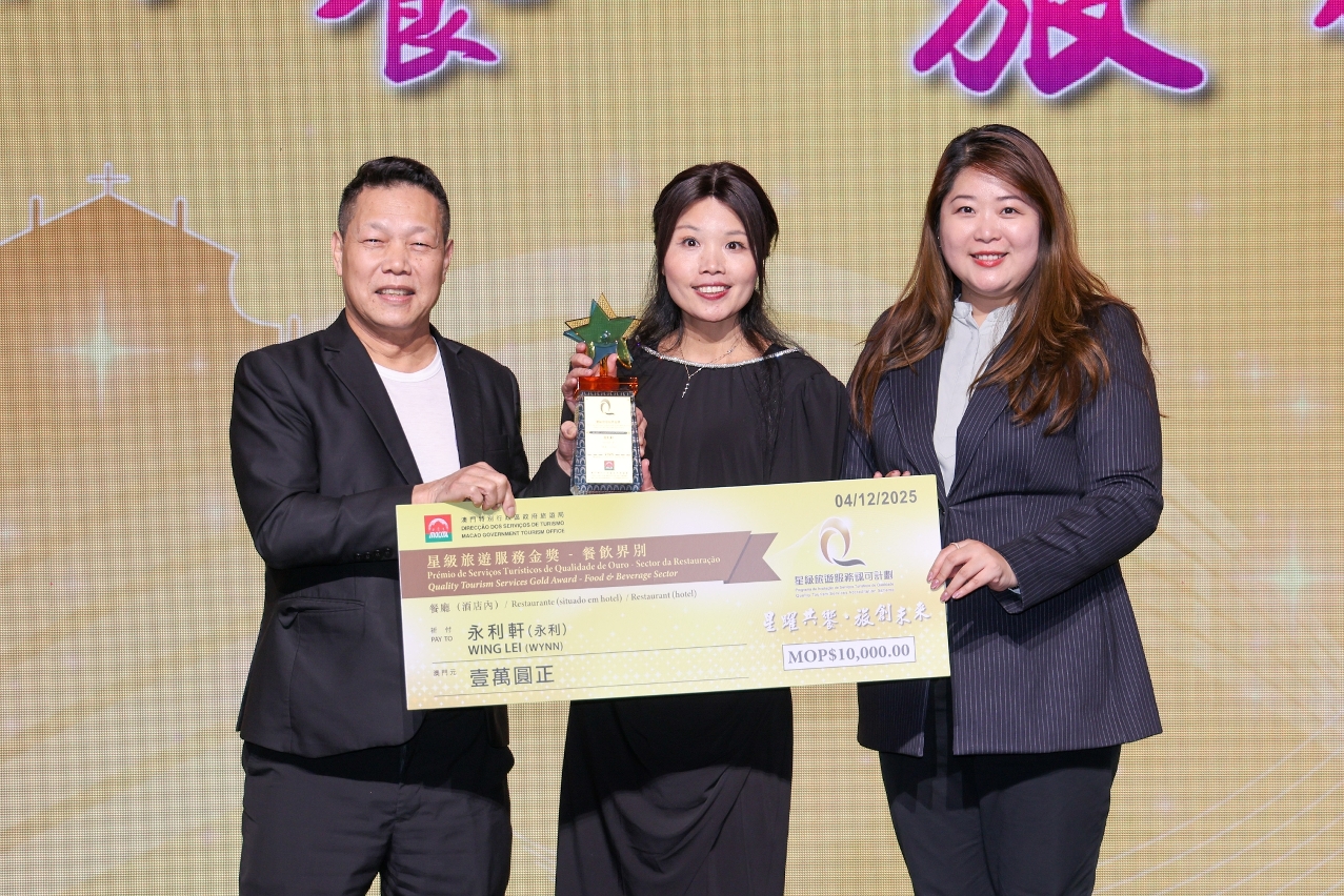 旅游局于今(4)日举办2025年度“星级旅游服务认可计划”餐饮及旅行社界别的颁奖典礼,嘉许本年度新参加及再次竞逐的获奖餐饮及旅行社商户。今年获得“星级旅游服务商户奖”的餐饮界别共有327间,旅行社界别有57间,鼓励澳门旅游业界提供优质旅游服务,共同打造澳门成为有礼优秀的旅游目的地。