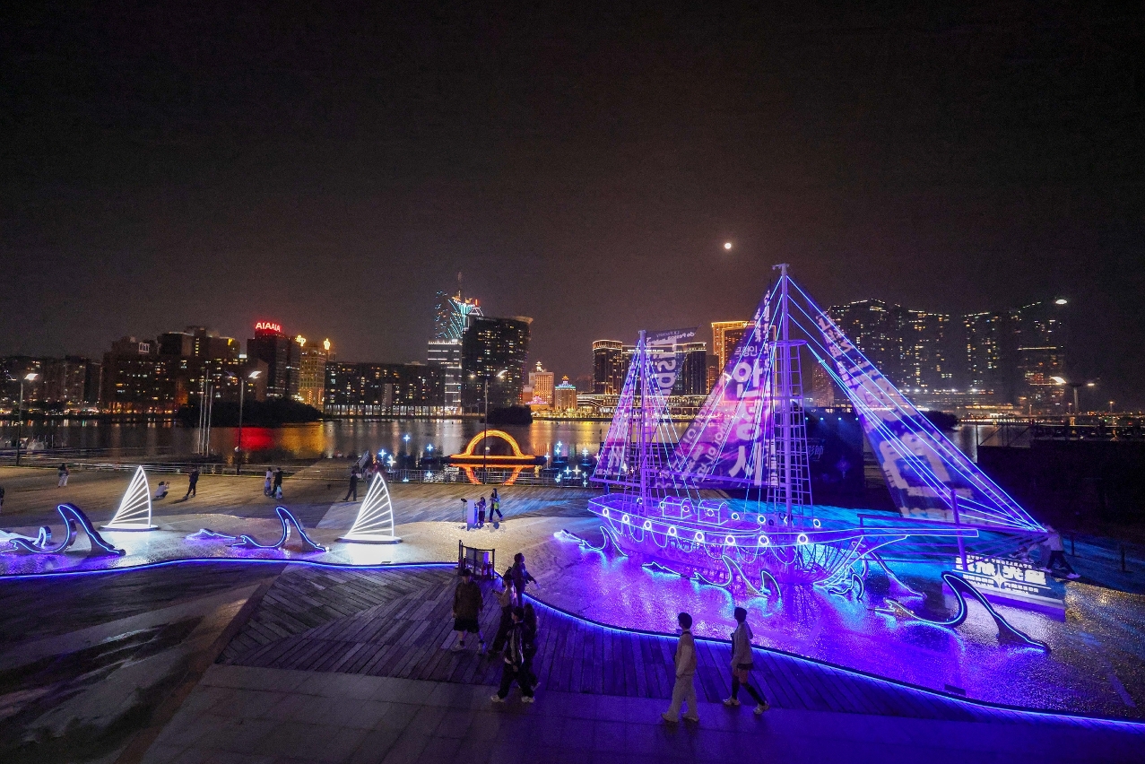“2025澳门国际光影节”分别于南湾区、北区和新口岸区合共设置28组装置,由12月6日至2026年1月11日每天傍晚6时至晚上10时亮灯,免费开放参观,吸引居民和旅客互动“打卡”的同时,亦引导居民和旅客深入社区,在周边商户消费,带动在地商机,进一步促进社区旅游与夜间经济。