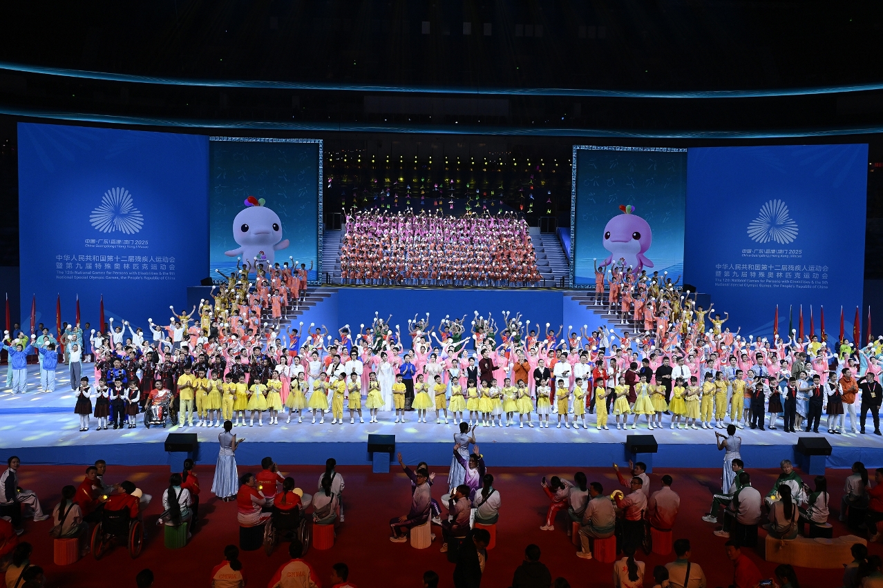 全国残特奥会闭幕活动于晚上八时在深圳体育中心体育馆举行,活动以简约而精彩的形式,传递残健共融、湾区同心、携手同行的温暖情谊,以及自强不息、团结协作、奋力拼搏的体育精神。残特奥会组委会执行主任、广东省省长孟凡利,残特奥会组委会副主任、香港特别行政区政务司司长陈国基,残特奥会组委会副主任、澳门特别行政区社会文化司司长柯岚及残特奥会组委会主任、中国残联主席程凯先后致辞。