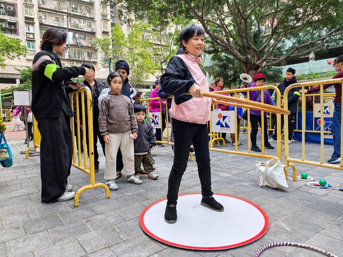 由体育局主办的“大众康体日”活动,于12月27日在宏开宏建休憩区举行,活动吸引了众多市民到场参与,当中有不少家长带同子女前来参与,藉着参与康体活动增进亲子关系,同时寓运动于娱乐。场内气氛温馨热闹,乐也融融。