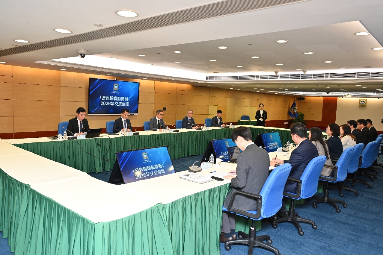 为促进社会各界合作预防电讯网络诈骗,司法警察局于2017年牵头成立“反诈骗联动机制”,冀透过保安、通讯、金融、教育等各个范畴的公私营部门深化合作,全面提升诈骗整体应对及防范能力。在有关机制合作框架下,近年各范畴公私营部门共同推动及落实多项有效措施,对反诈防骗工作发挥积极作用。为应对持续演变的电讯网络诈骗威胁,司法警察局联同邮电局、金融管理局于2026年1月15日召开“反诈骗联动机制2026年交流会议”,检视及完善现有合作机制,并就推动全新防治方案进行深入交流,携手预防和打击电讯网络诈骗犯罪。