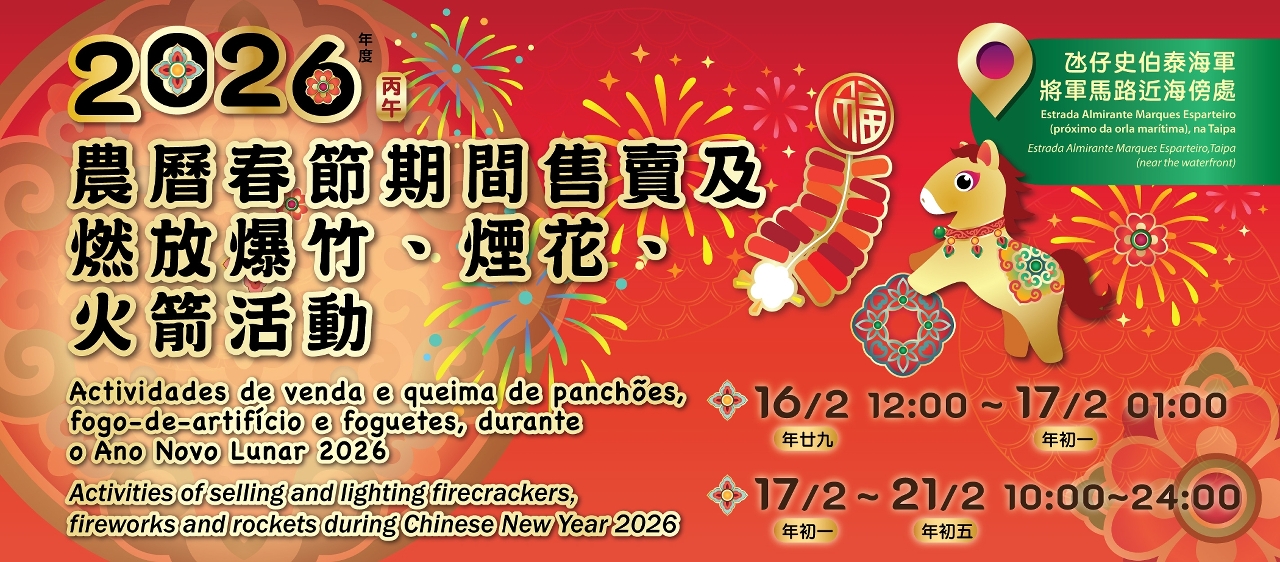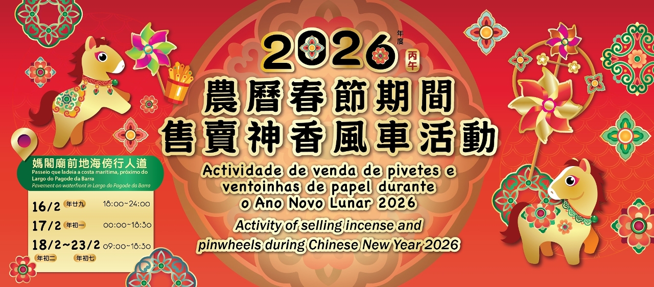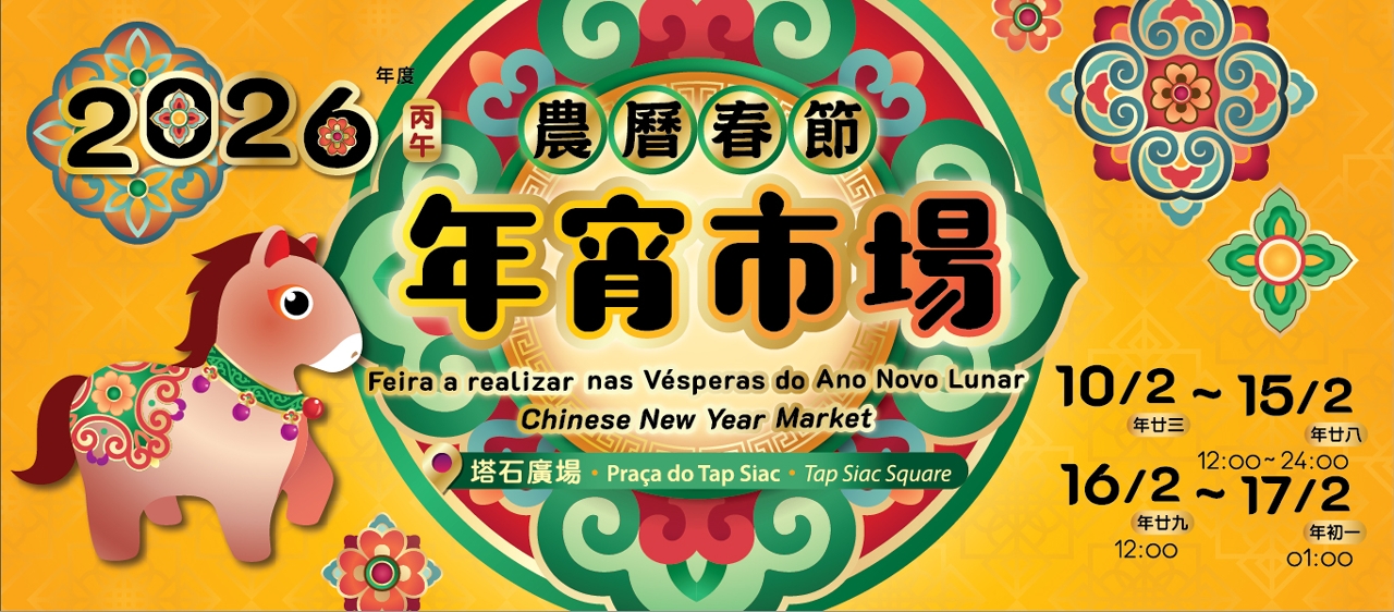 丙午马年将至,市政署将举办年宵市场,并设置爆竹燃放区及售卖神香风车摊檔,与市民及游客一起迎新岁、贺新禧。市政署呼吁活动参加者留意现场人流情况,遵从现场工作人员指示及遵守秩序。