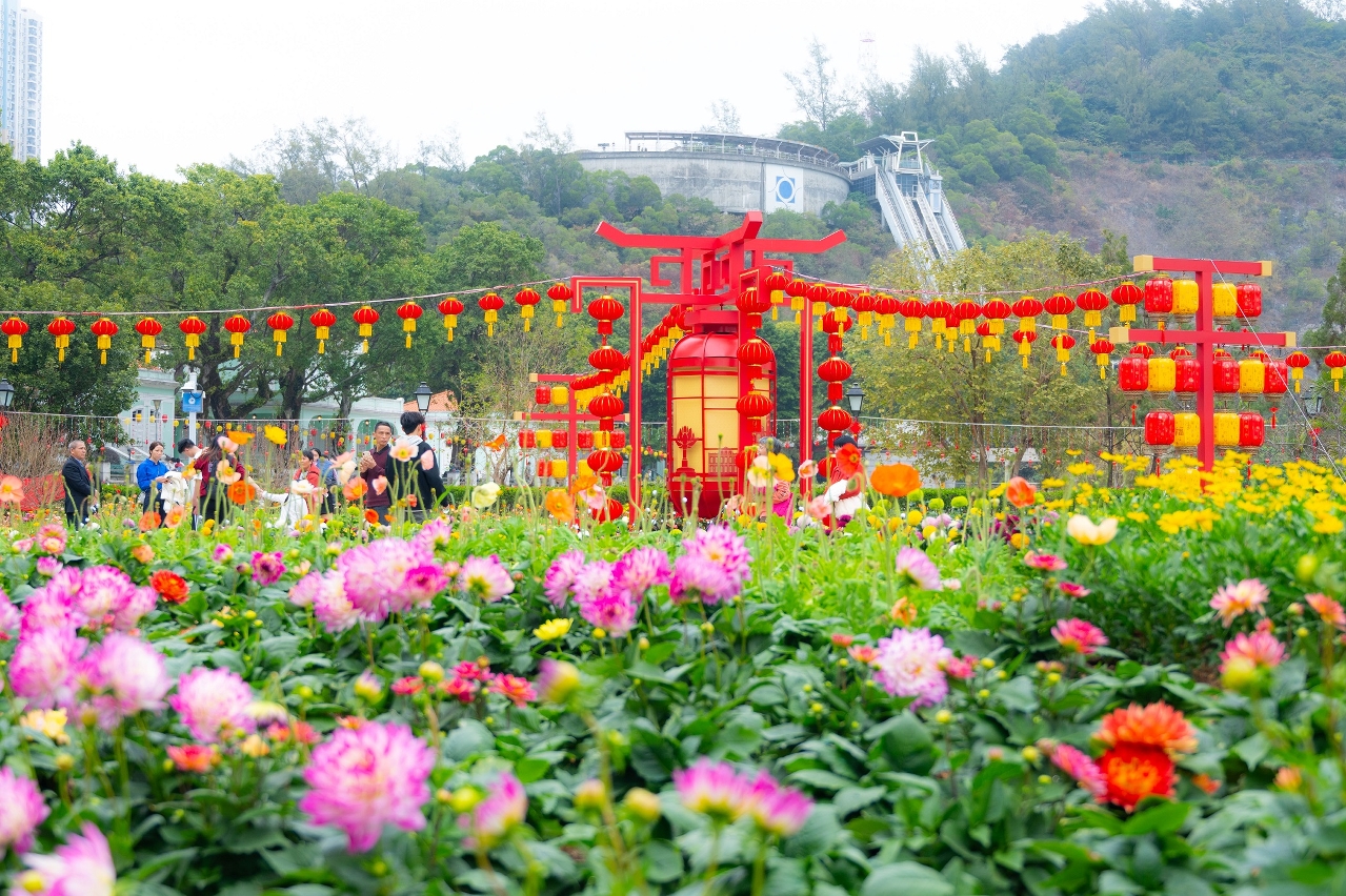 今年是丙午马年,花展将以马年装饰为主题,搭配各色大丽花及其他带有吉祥如意的贺年花卉作展示,组成层次丰富的花海,营造繁花缤纷的视觉效果。同时,展场共设有五个打卡点,包括“福马报春”、“飞檐灯巷”、“八景灯集”、“竹灯纳福”及“剪纸马市”,市民可融入精致的花境拍照打卡留念,让市民及游客感受浓厚的新春节日气氛,共度佳节。